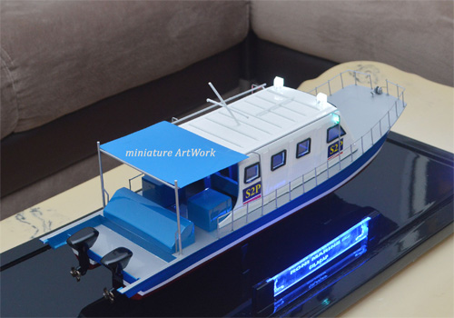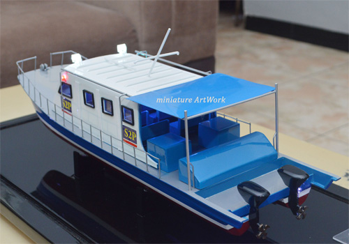 - Miniatur kapal Crew Boat S2P Roni Marine ini berbahan dasar fiber,