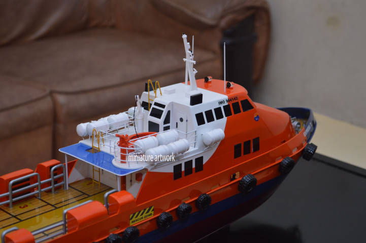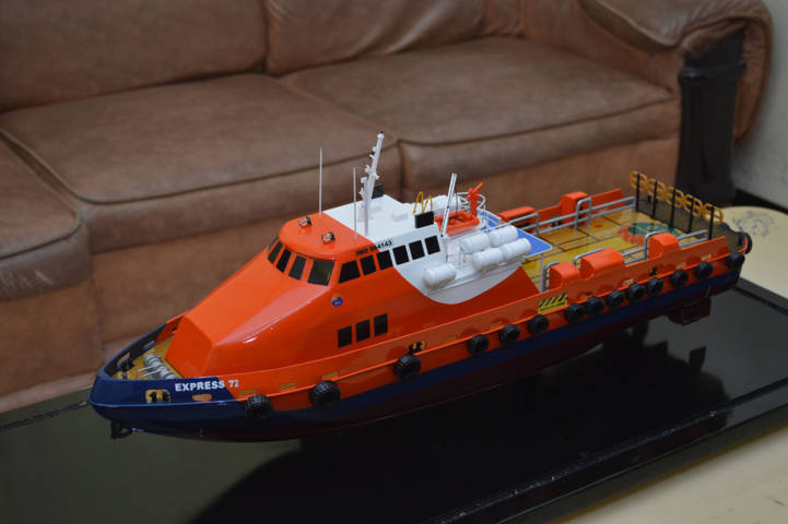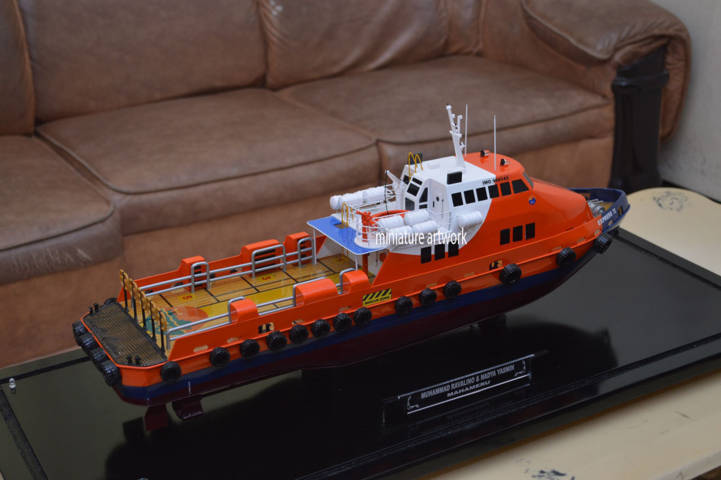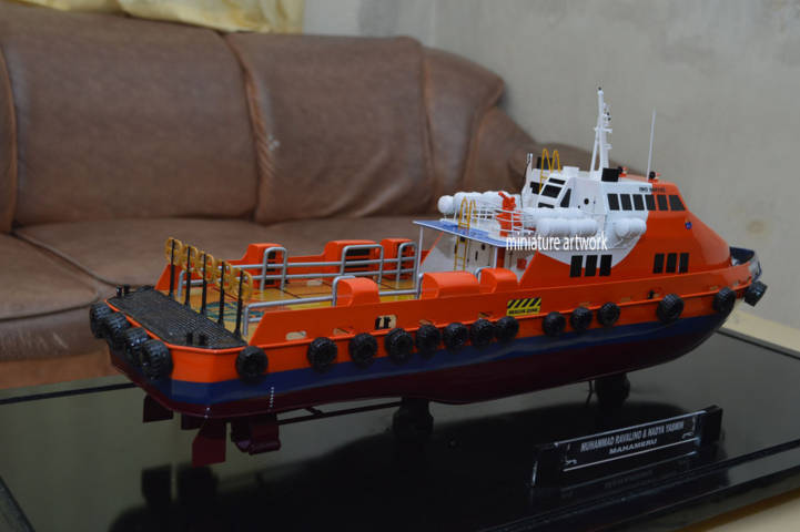- Miniatur kapal Crew Boat Express 72 ini berbahan dasar fiber,