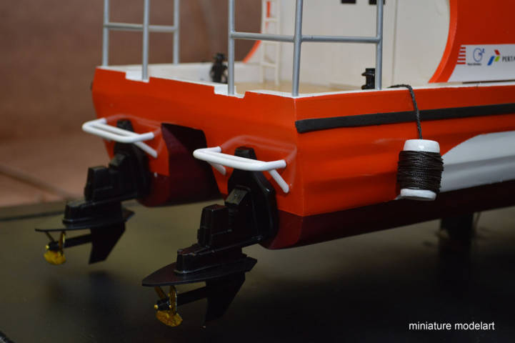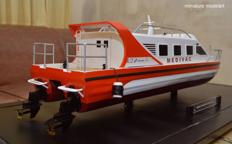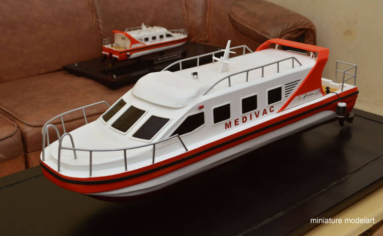 Miniatur kapal Crew Boat Medivac ini berbahan dasar fiber,