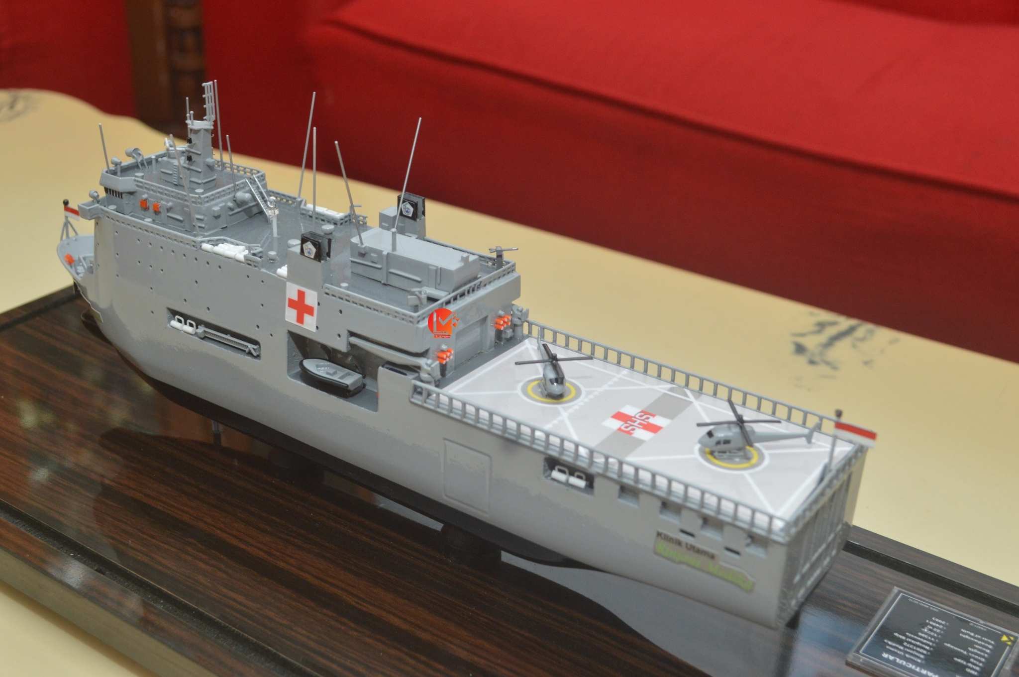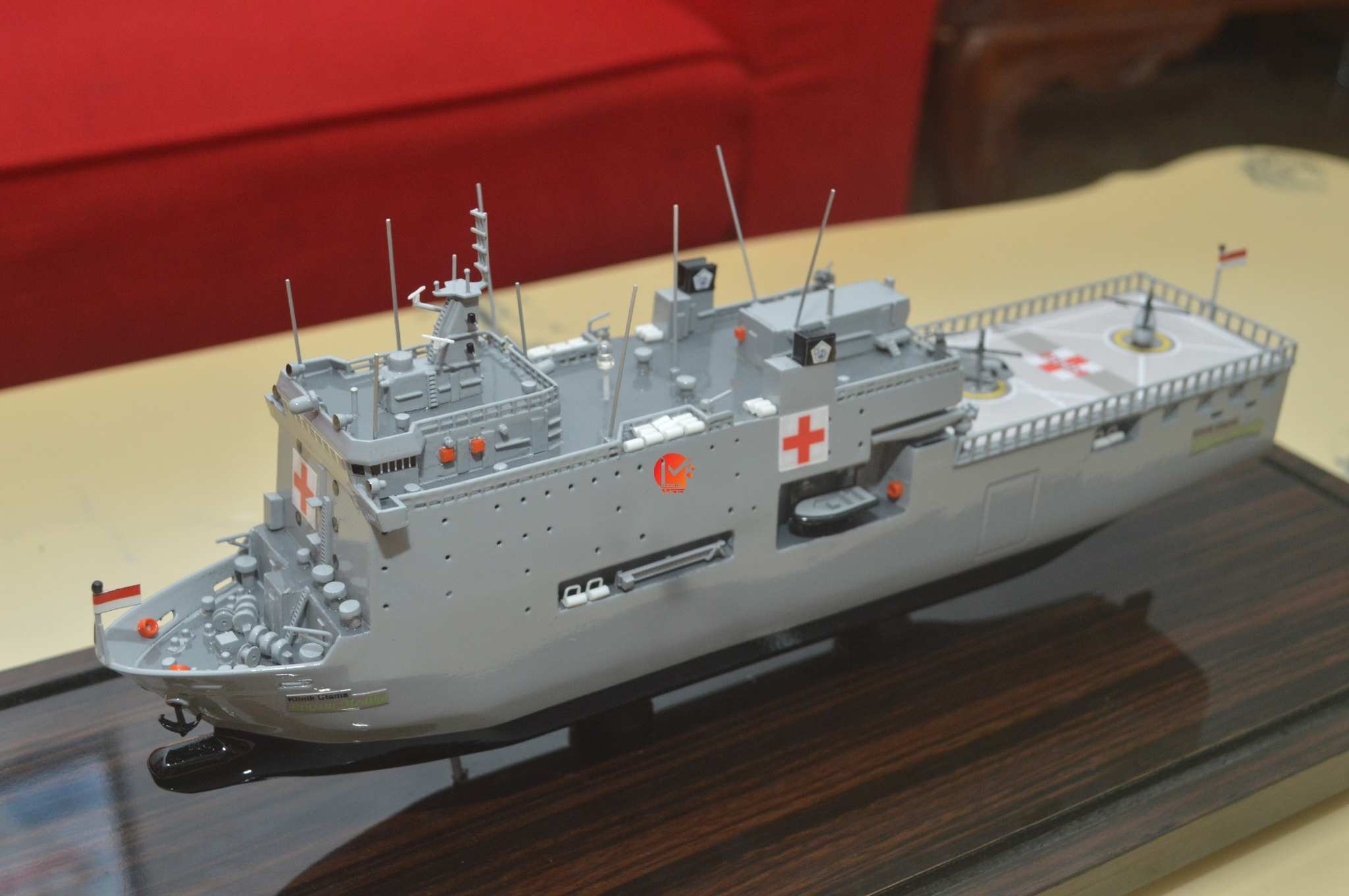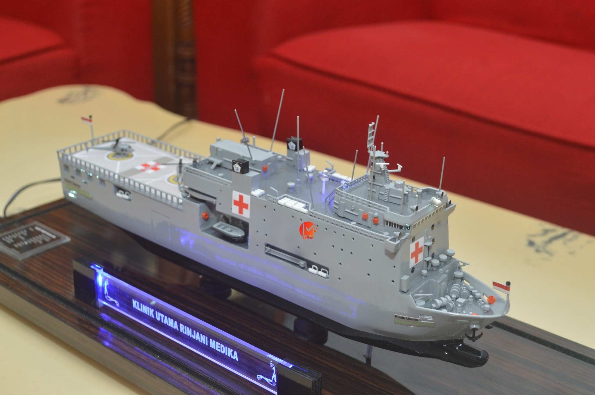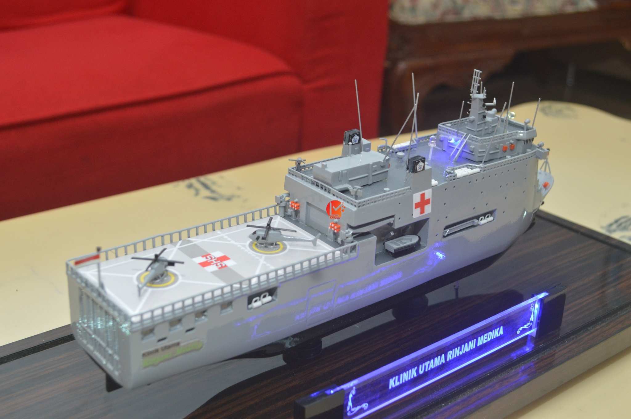- Miniatur Kapal KRI Dr. Soeharso ini berbahan dasar fiber, acrylic, resin, artificial part, kayu sebagai tatakan serta dilengkapi pencahayaan dengan lampu led ( optional ), kemudian kami bingkai dengan etalase kaca ( optional )