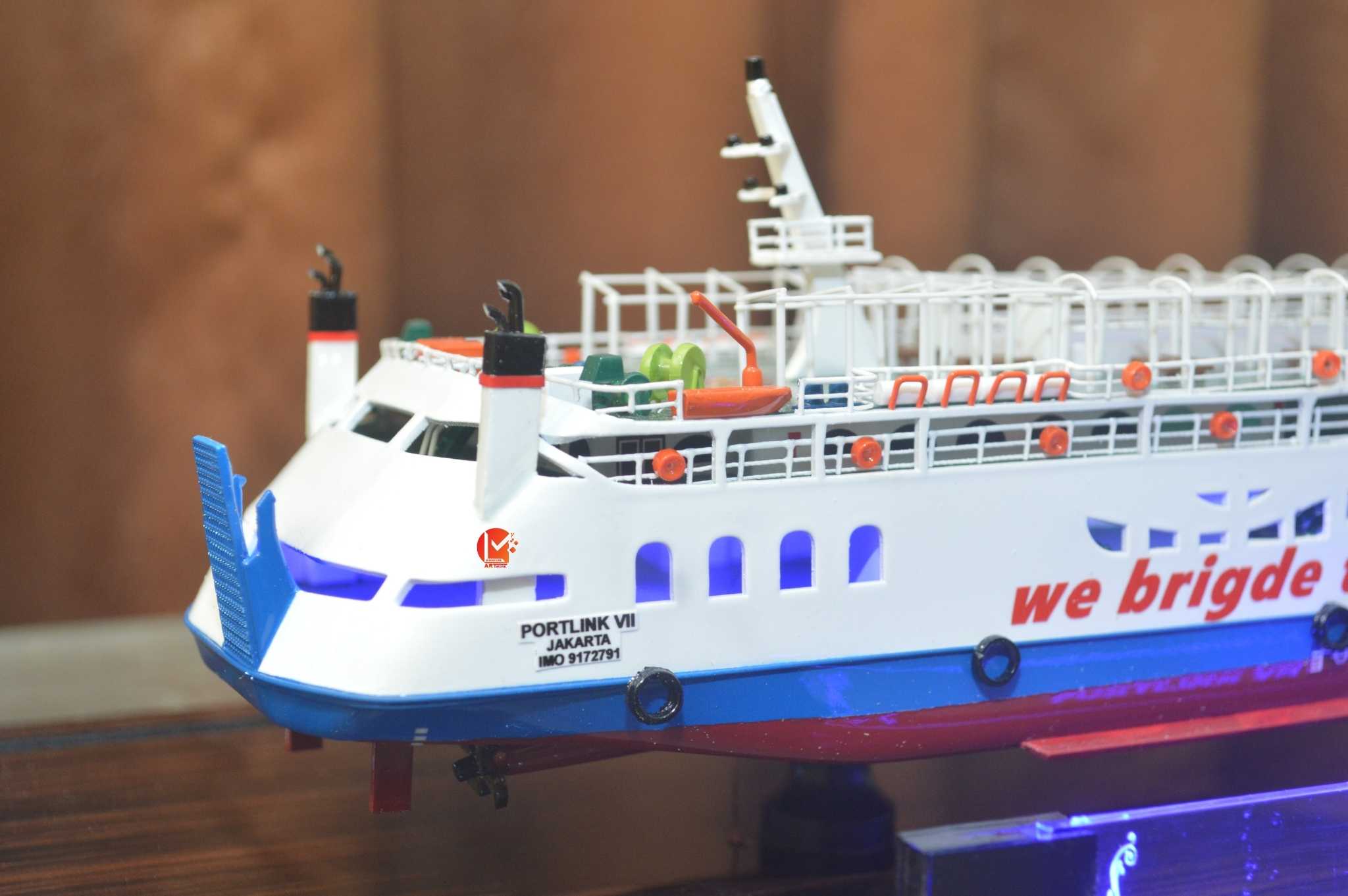 - Miniatur Kapal Ro-ro Port Link VII ini berbahan dasar fiber, acrylic, resin, artificial part, kayu sebagai tatakan serta dilengkapi pencahayaan dengan lampu led ( optional ), kemudian kami bingkai dengan etalase kaca ( optional )