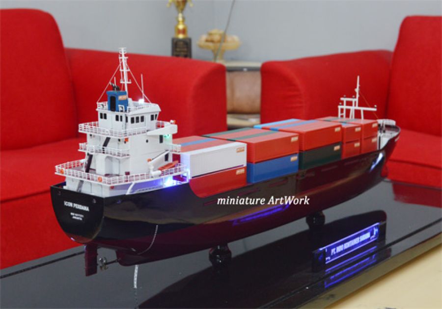 - Miniatur kapal Tanker Icon Perdana ini berbahan dasar fiber, acrylic, resin, artificial part, kayu sebagai tatakan serta dilengkapi pencahayaan dengan lampu led ( optional ),