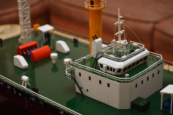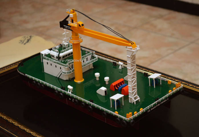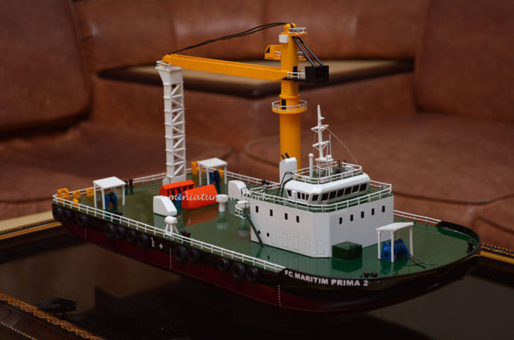 diorama berupa muatan kapal dan dipadukan dengan tugboat semakin menambah keindahan miniatur ini.