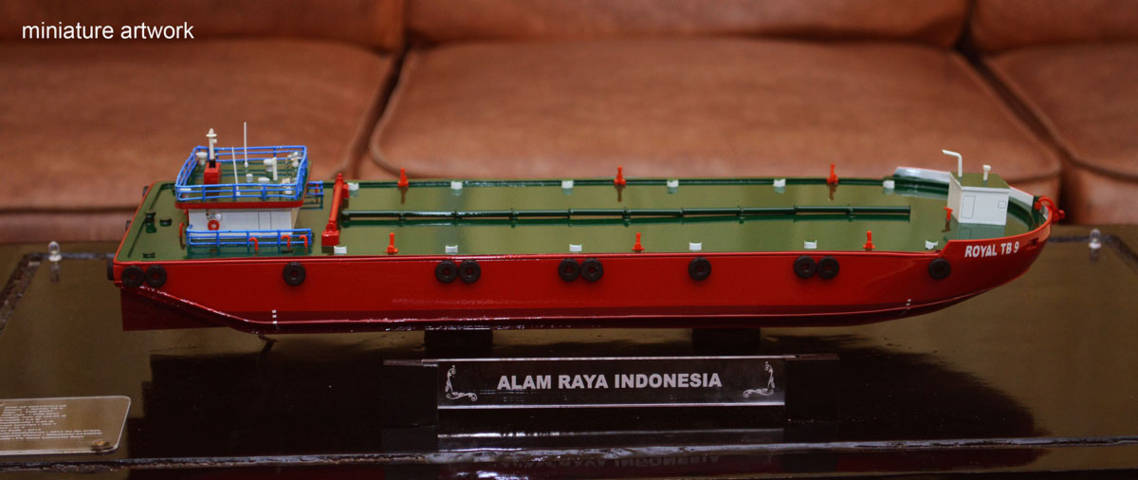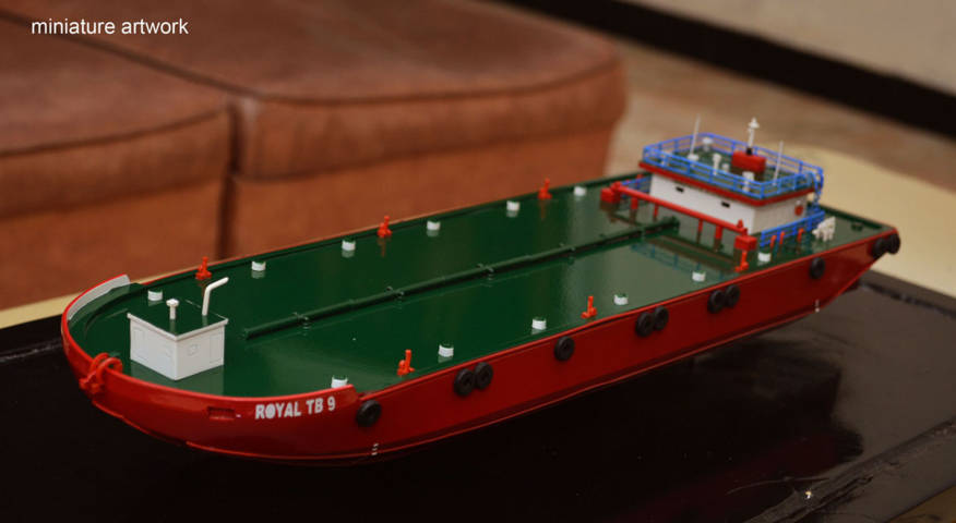 Miniatur kapal tongkang Royal : Miniatur kapal dengan bentuk sederhana namun memiliki tingkat detail yang khas ,biasanya dengan penambahan