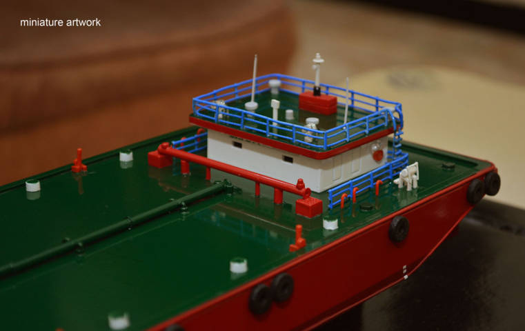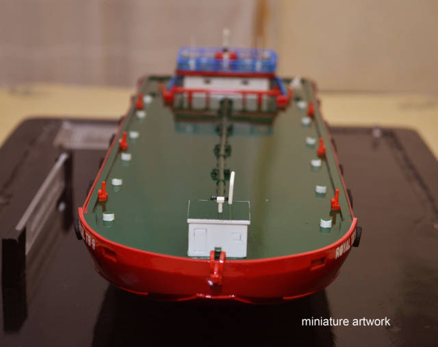 diorama berupa muatan kapal dan dipadukan dengan tugboat semakin menambah keindahan miniatur ini.