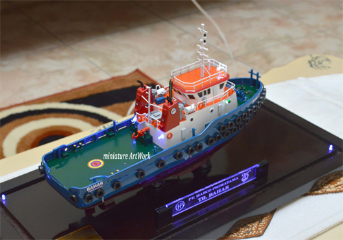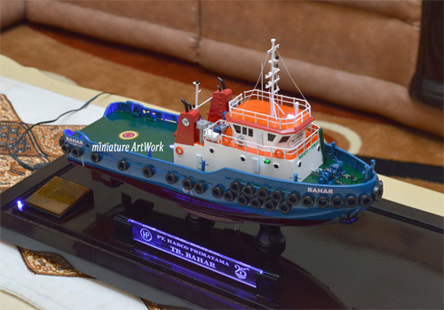 Miniatur kapal Tugboat Bahar; kapal tug boat adalah Kapal tunda (bahasa Inggris: tugboat) adalah kapal yang dapat digunakan untuk melakukan manuver / pergerakan, utamanya menarik atau mendorong kapal lainnya di pelabuhan, laut lepas atau melalui sungai atau terusan. Kapal tunda digunakan pula untuk menarik tongkang,kapal rusak, dan peralatan lainnya.