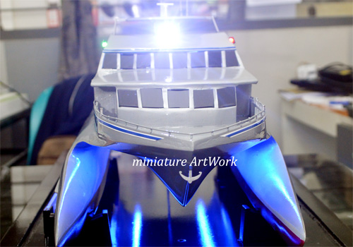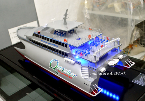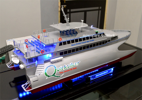 - Miniatur kapal Yacht Quicksilver ini berbahan dasar fiber, acrylic, resin, artificial part, kayu sebagai tatakan serta dilengkapi pencahayaan