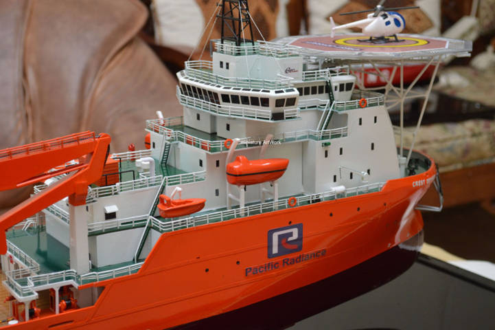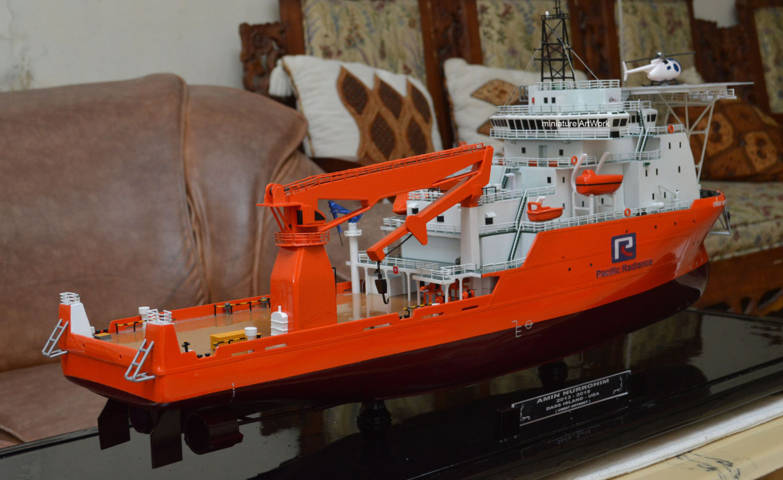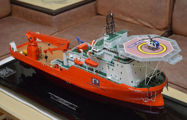 - Miniatur kapal Supply Crest Odyssey ini berbahan dasar fiber, acrylic, resin, artificial part, kayu sebagai tatakan serta dilengkapi pencahayaan dengan lampu led ( optional ),