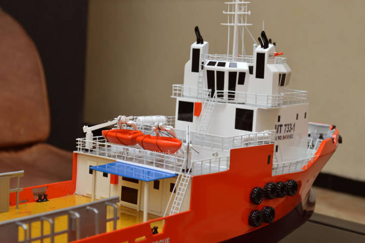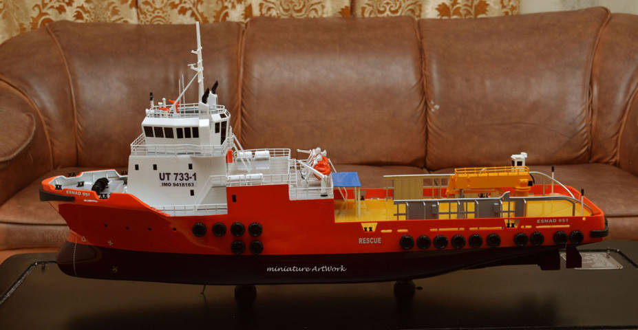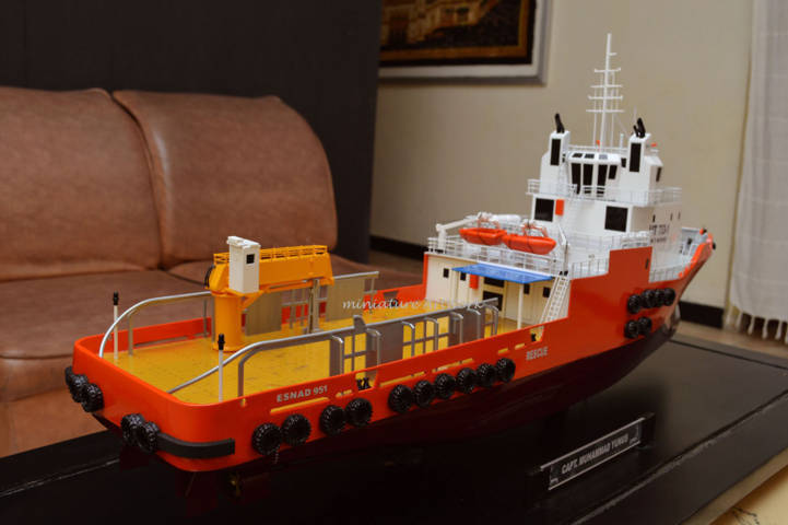 - Miniatur kapal Supply Esnad ini berbahan dasar fiber, acrylic, resin, artificial part, kayu sebagai tatakan serta dilengkapi pencahayaan dengan lampu led ( optional ),