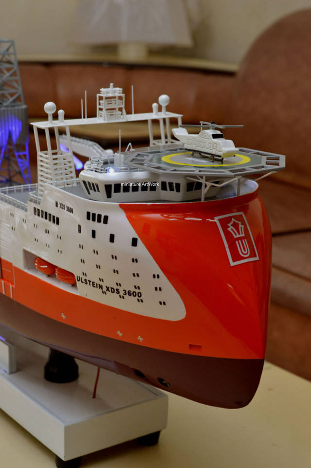 Miniatur kapal Supply Ulstein XDS 3600 ini berbahan dasar fiber, acrylic, resin, artificial part, kayu sebagai tatakan serta dilengkapi pencahayaan dengan lampu led ( optional ), kemudian kami bingkai dengan etalase kaca ( optional ) .