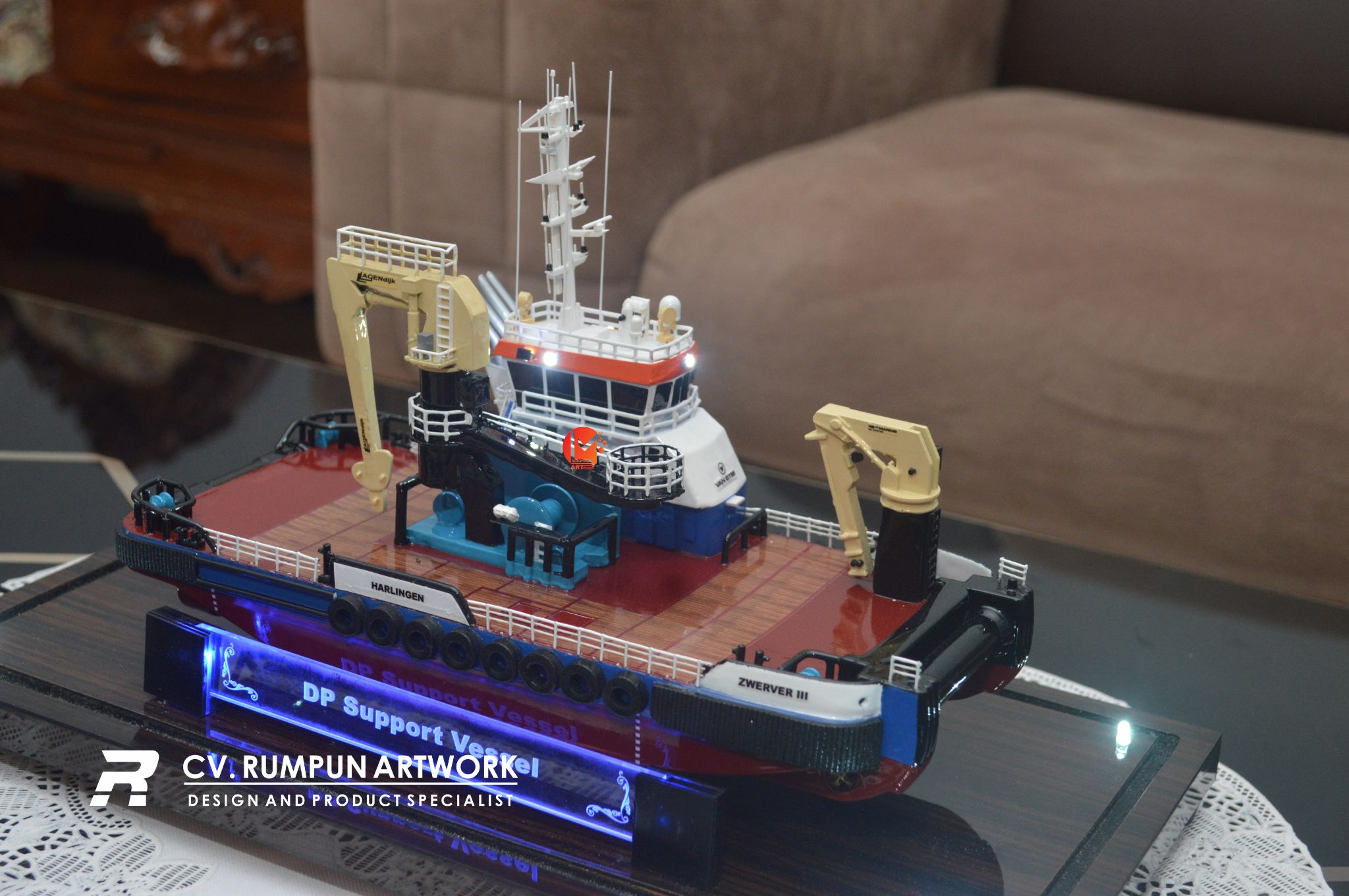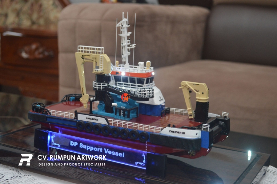 - Miniatur Kapal Offshore Zwerver III ini berbahan dasar fiber, acrylic, resin, artificial part, kayu sebagai tatakan serta dilengkapi pencahayaan dengan lampu led ( optional ), kemudian kami bingkai dengan etalase kaca ( optional )