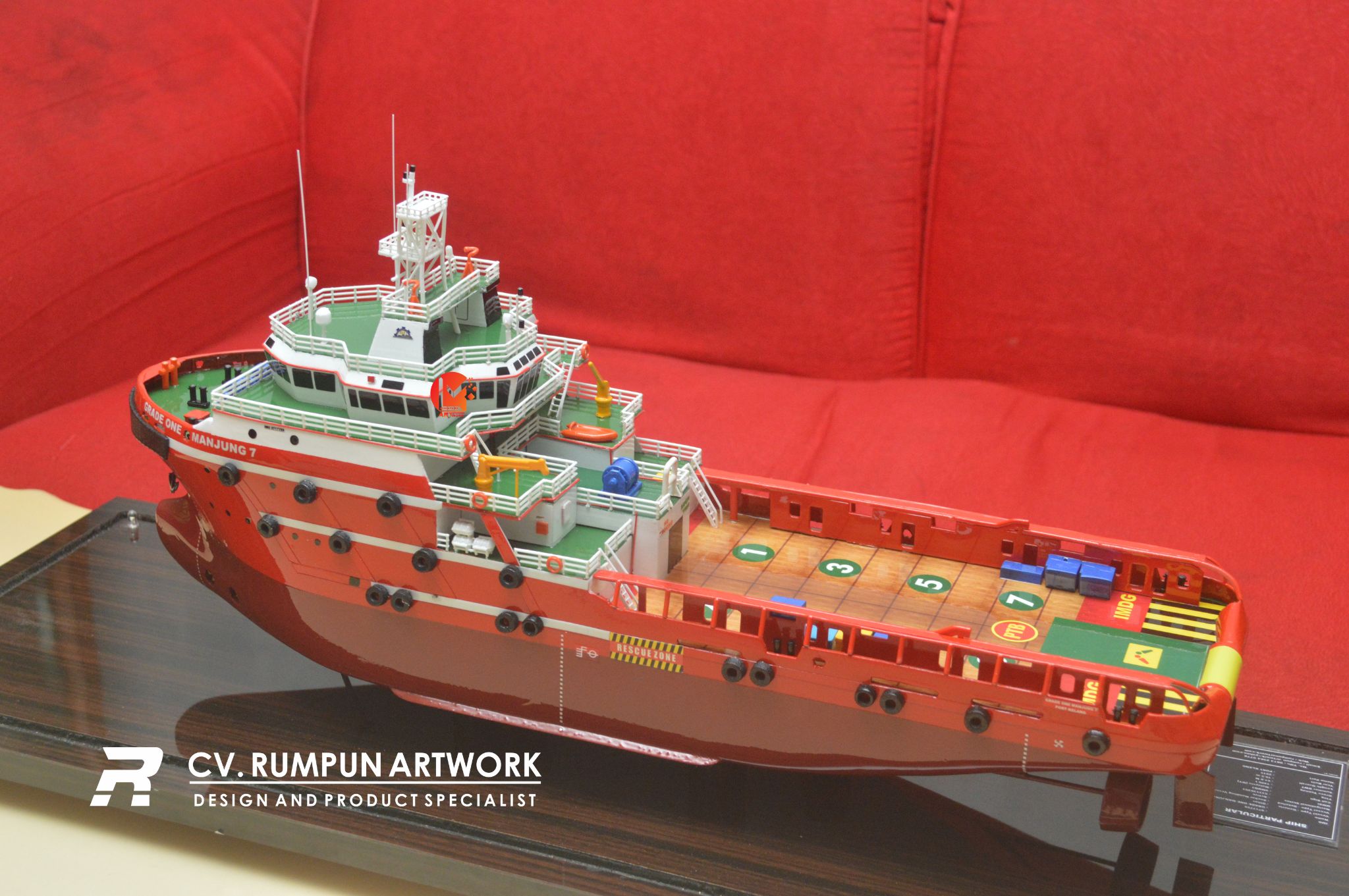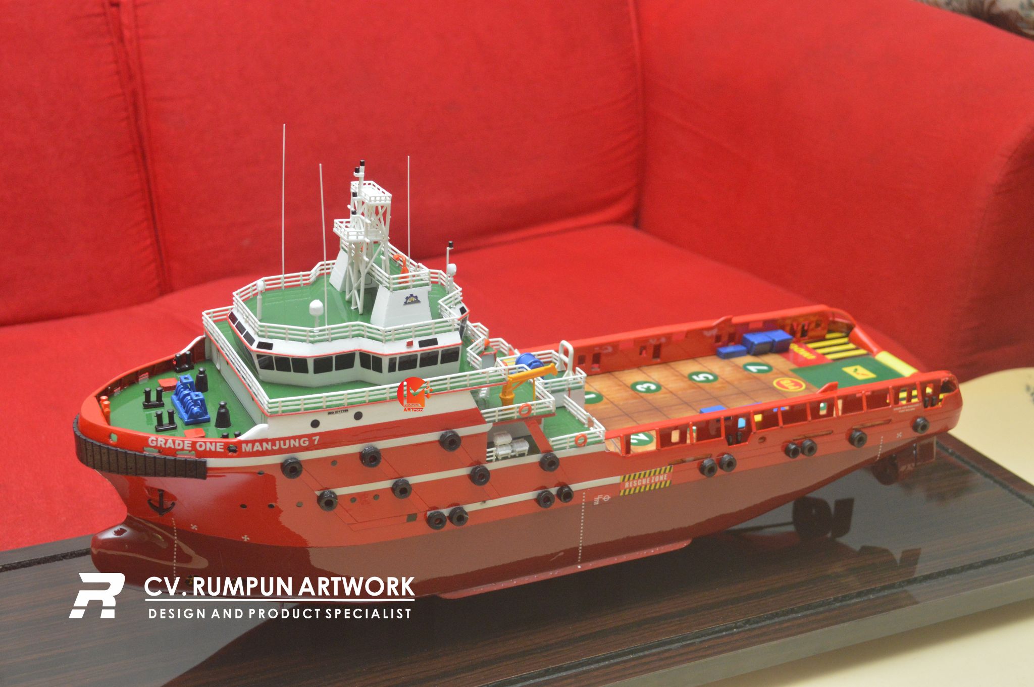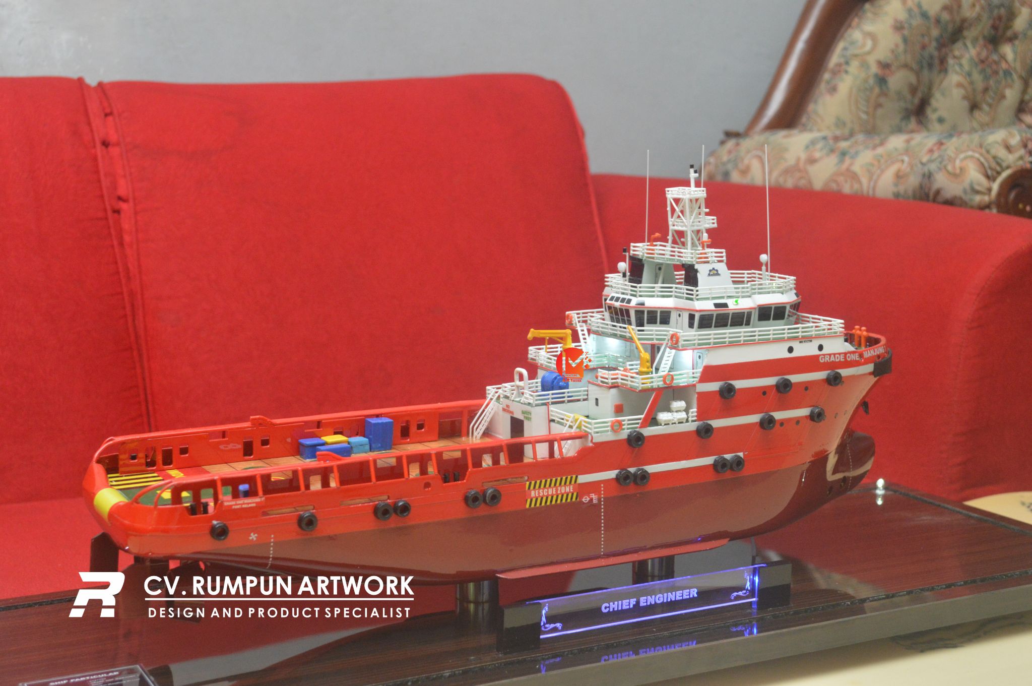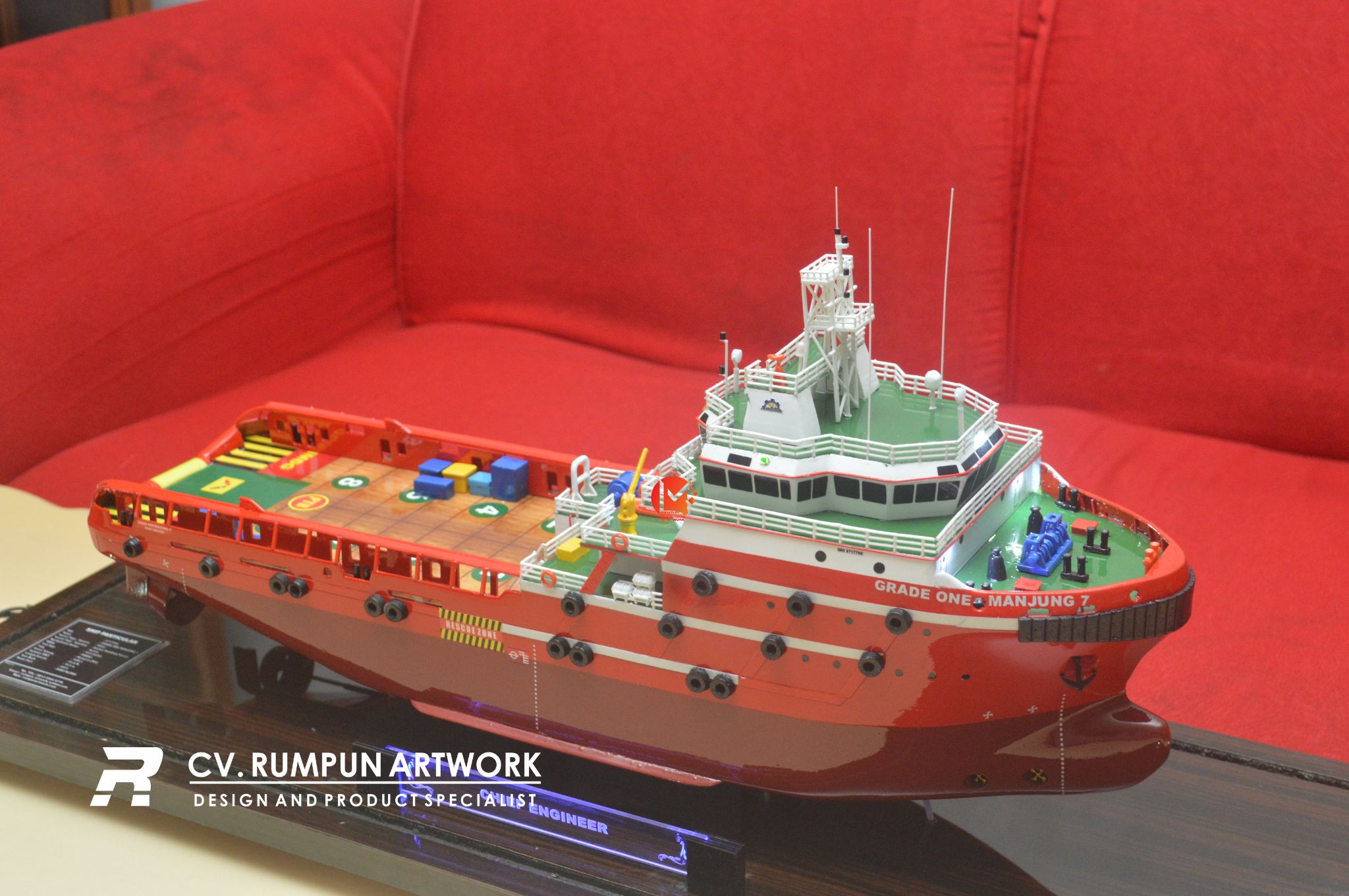- Miniatur Kapal AHTS Grade One Manjung ini berbahan dasar fiber, acrylic, resin, artificial part, kayu sebagai tatakan serta dilengkapi pencahayaan dengan lampu led ( optional ), kemudian kami bingkai dengan etalase kaca ( optional )