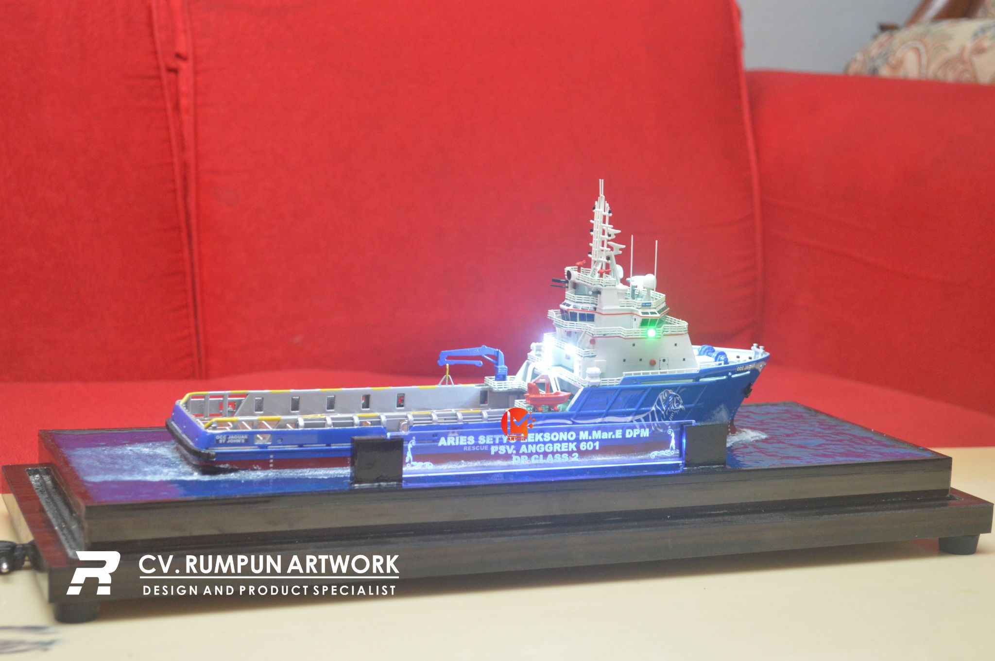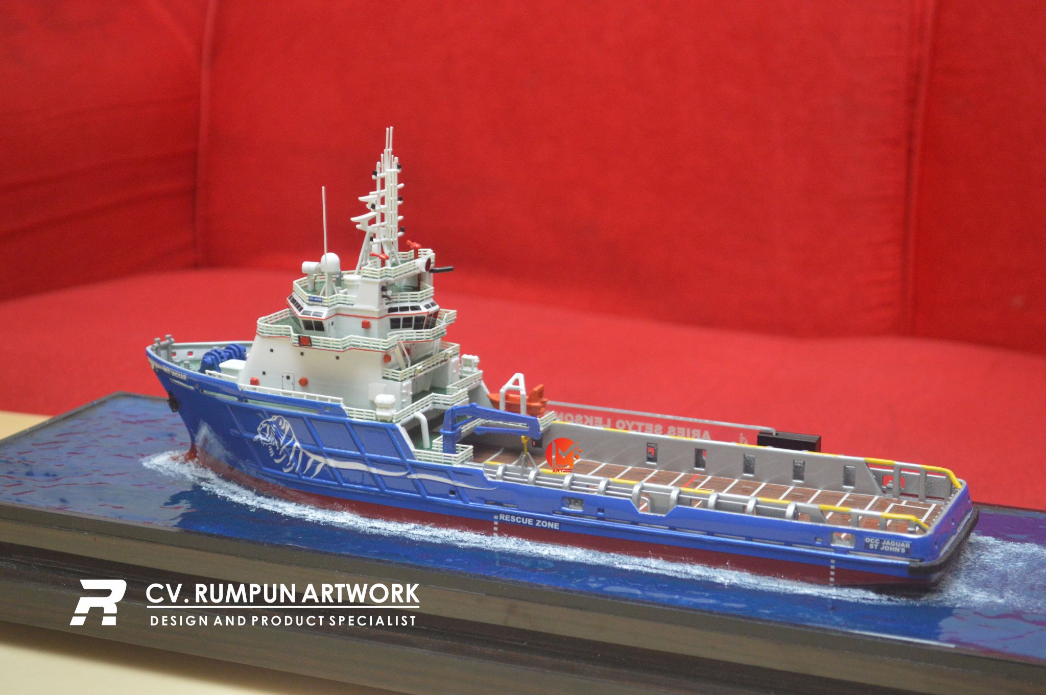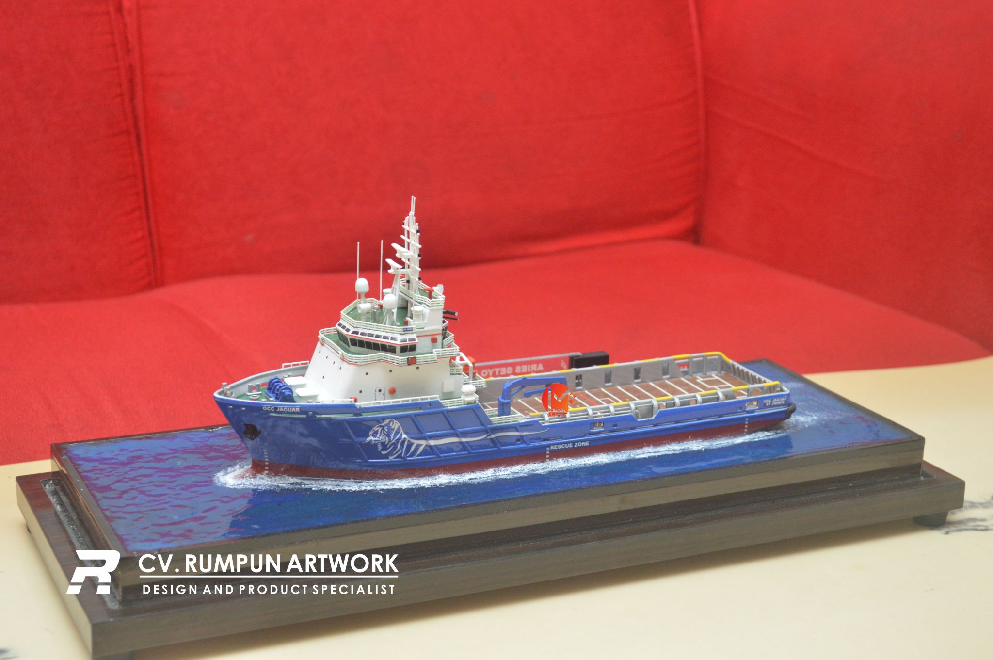 - Miniatur Kapal Offshore OOC Jaguar ini berbahan dasar fiber, acrylic, resin, artificial part, kayu sebagai tatakan serta dilengkapi pencahayaan dengan lampu led ( optional ), kemudian kami bingkai dengan etalase kaca ( optional ) dibuat dengan berbagai macam ukuran (30 cm, 40 cm, 70 cm, dan 100 cm)