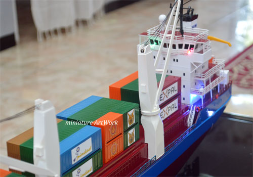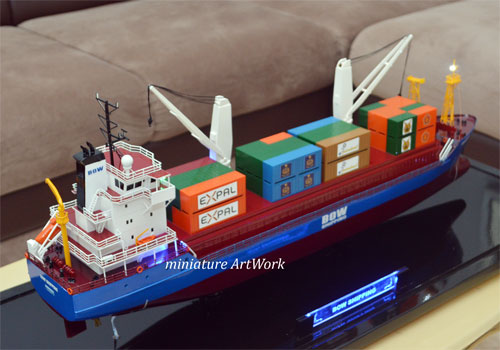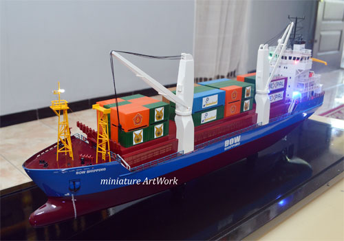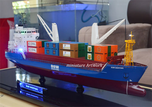 - Miniatur kapal Container Bow Shipping ini berbahan dasar fiber, acrylic, resin, artificial part, kayu sebagai tatakan serta dilengkapi pencahayaan dengan lampu led ( optional ),
