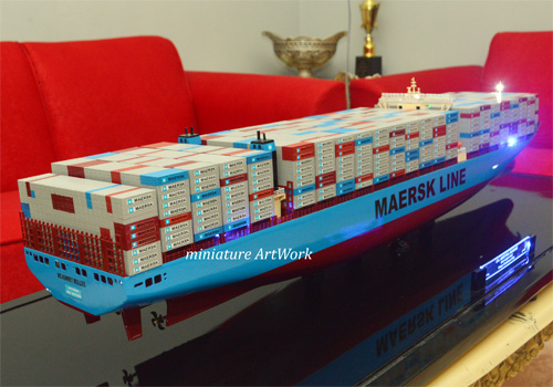 - Miniatur kapal Container Maersk Mc Kinney Moller ini berbahan dasar fiber, acrylic, resin, artificial part, kayu sebagai tatakan serta dilengkapi pencahayaan dengan lampu led ( optional ),