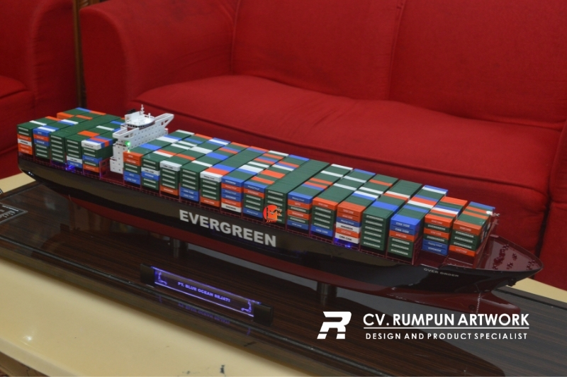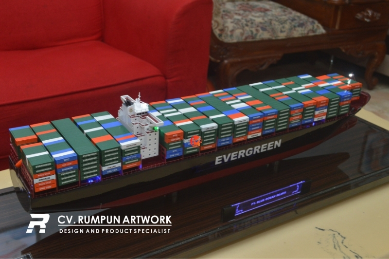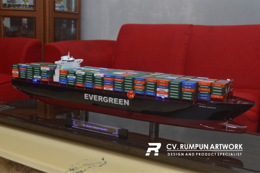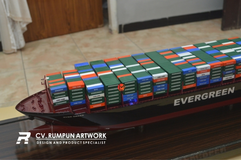 - Miniatur Kapal Container MV Ever Order ini berbahan dasar fiber, acrylic, resin, artificial part, kayu sebagai tatakan serta dilengkapi pencahayaan dengan lampu led ( optional ), kemudian kami bingkai dengan etalase kaca ( optional )