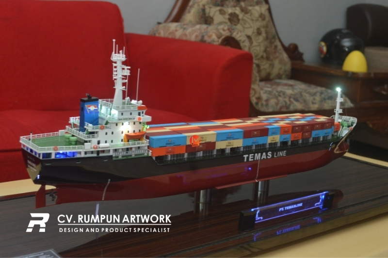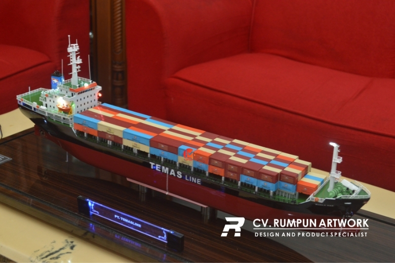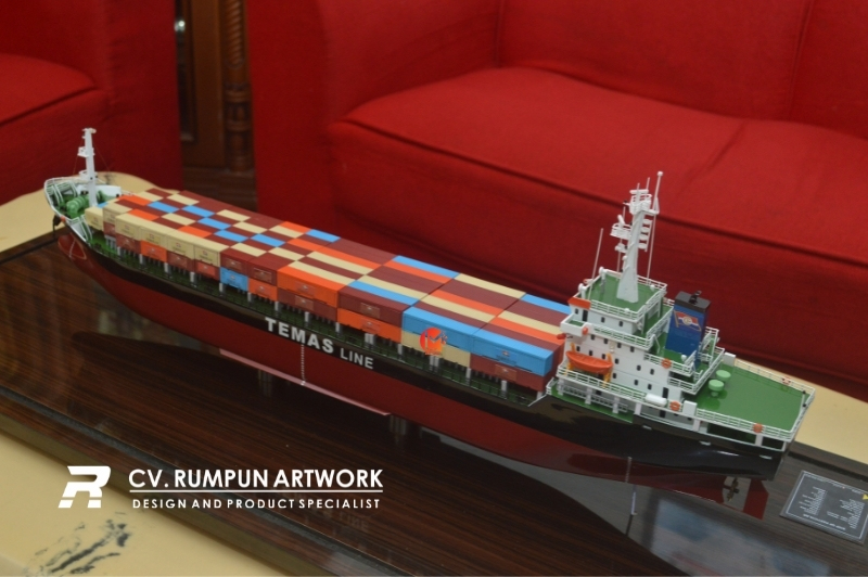 - Miniatur Kapal Container Kuala Mas ini berbahan dasar fiber, acrylic, resin, artificial part, kayu sebagai tatakan serta dilengkapi pencahayaan dengan lampu led ( optional ), kemudian kami bingkai dengan etalase kaca ( optional )