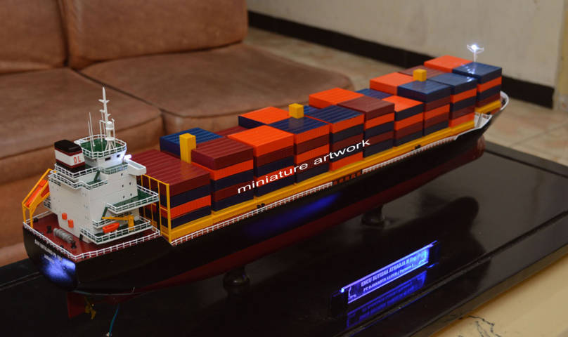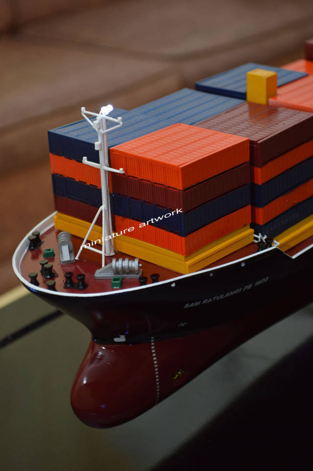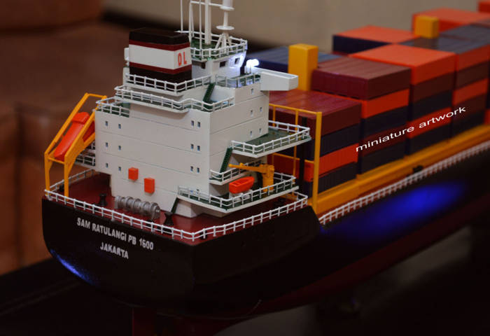 - Miniatur kapal Container Sam Ratulangi ini berbahan dasar fiber, acrylic, resin, artificial part, kayu sebagai tatakan serta dilengkapi pencahayaan dengan lampu led ( optional ),