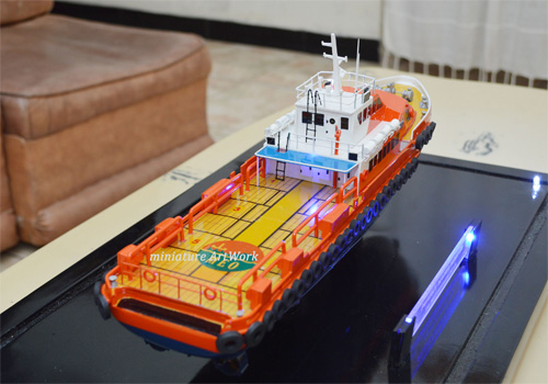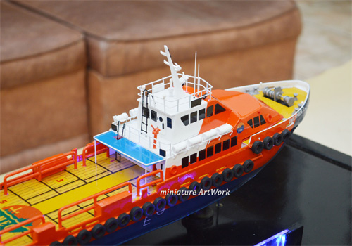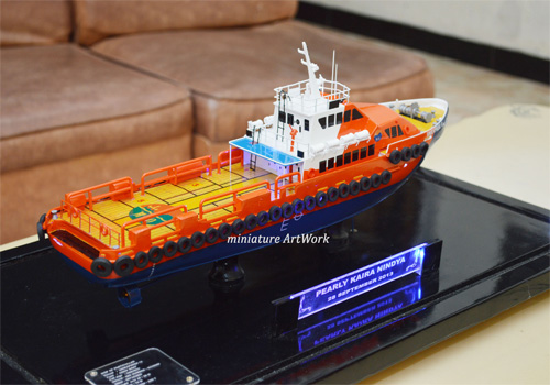 - Miniatur kapal Crew Boat Uni Express 12 ini berbahan dasar fiber,