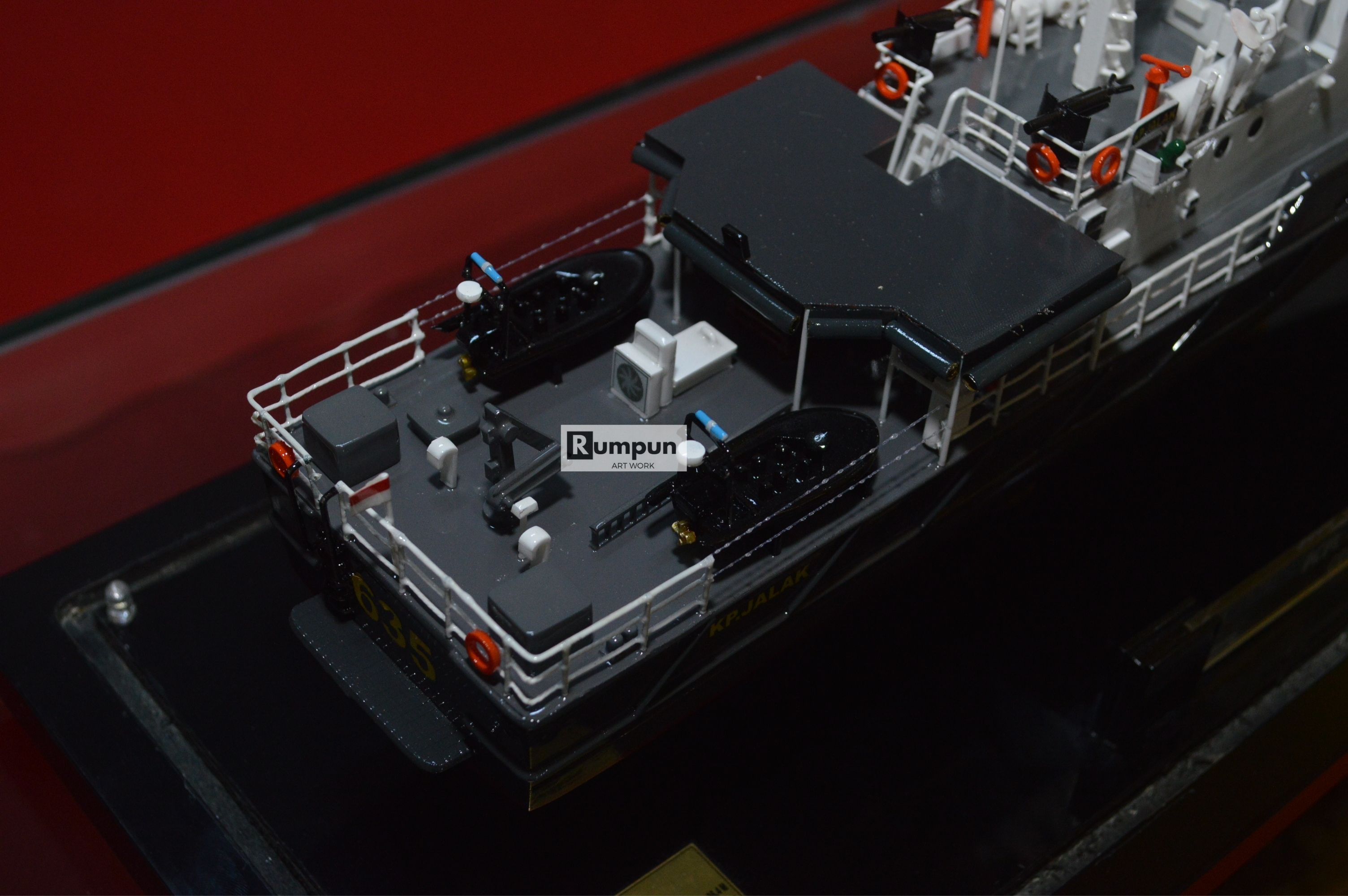 - Miniatur kapal Crew Boat SAR 243 ini berbahan dasar fiber, acrylic, resin, artificial part,kayu sebagai tatakan serta dilengkapi pencahayaan dengan lampu led (optional), kemudian kami bingkai dengan etalase kaca (optional) .