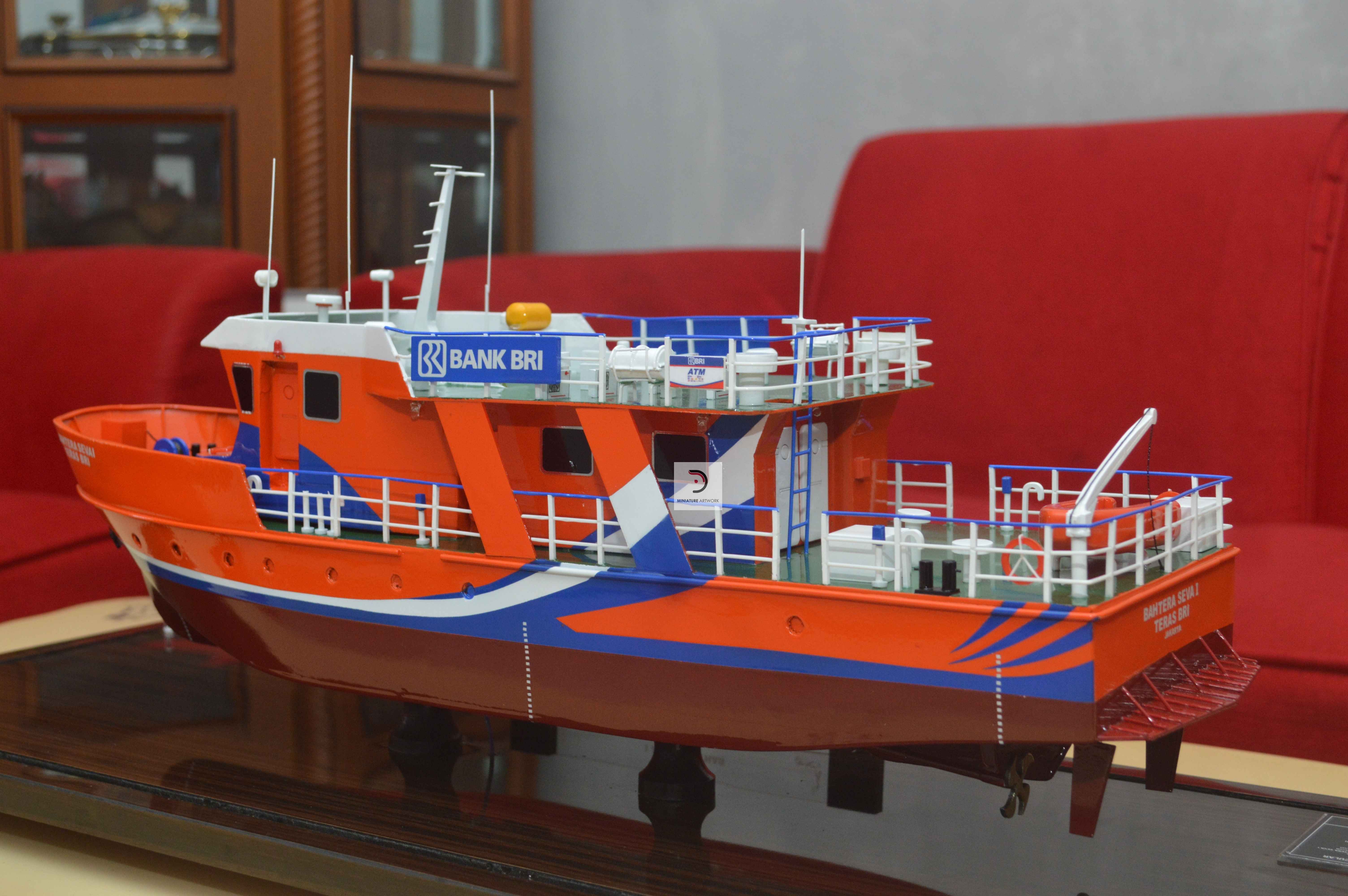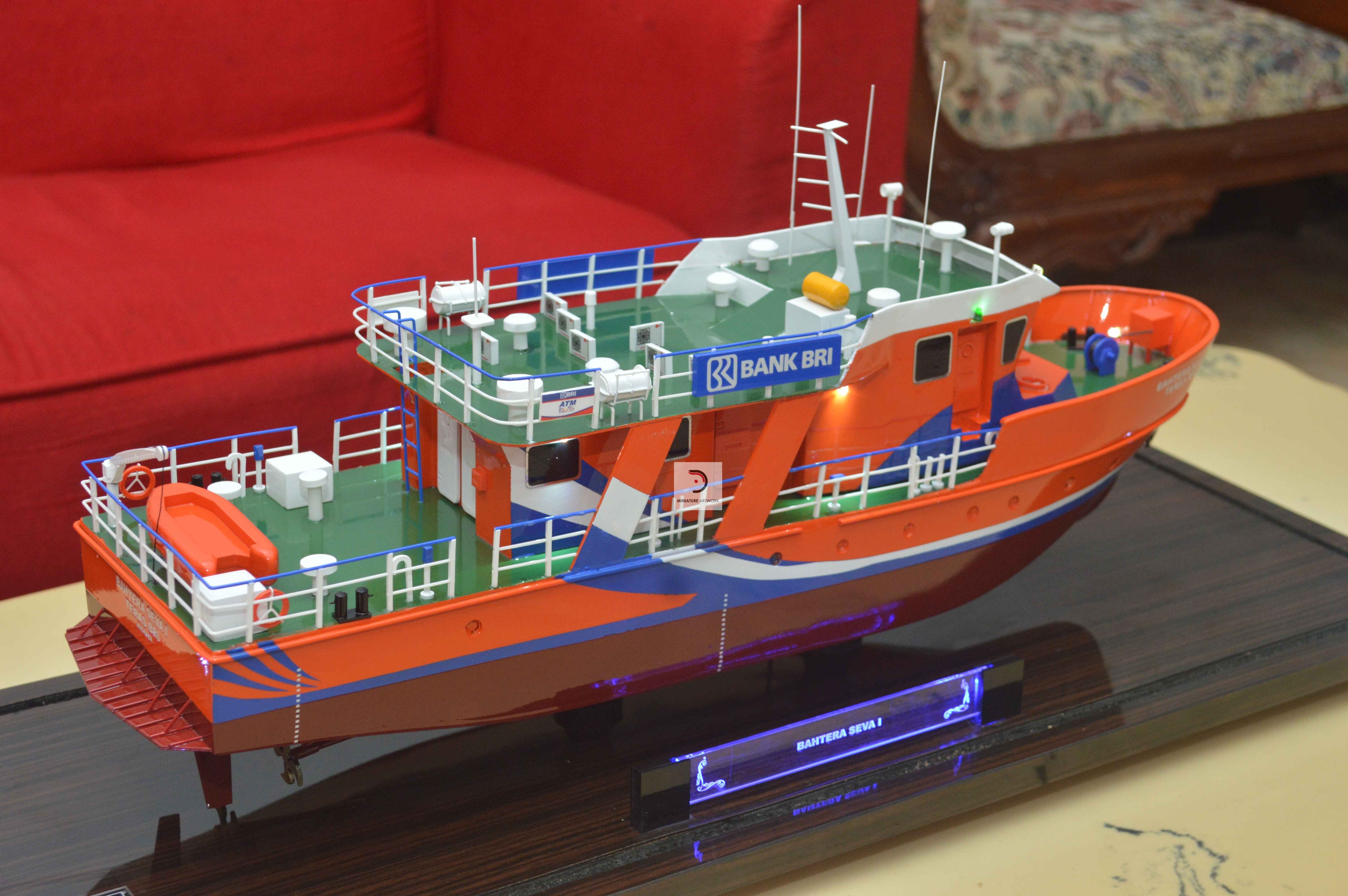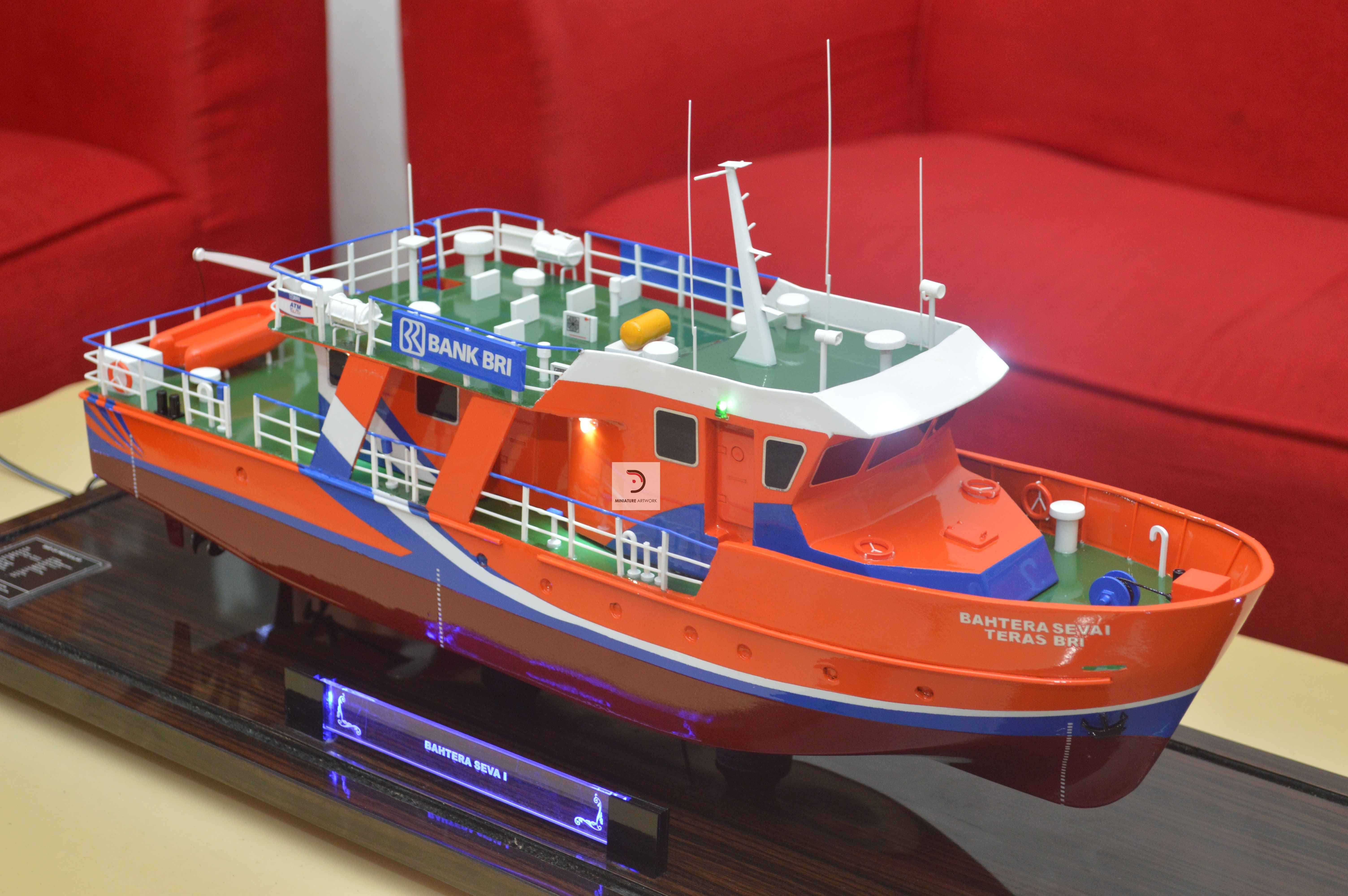 - Miniatur Kapal Bahtera Seva I ini berbahan dasar fiber, acrylic, resin, artificial part, kayu sebagai tatakan serta dilengkapi pencahayaan dengan lampu led ( optional ), kemudian kami bingkai dengan etalase kaca ( optional )