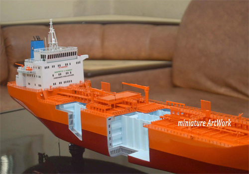 Miniatur kapal cut out tanker berawal dari permintaan pembuatan alat peraga sekolah kemaritiman berupa miniatur kapal, dengan menampakkan bagian dalam lambung kapal.