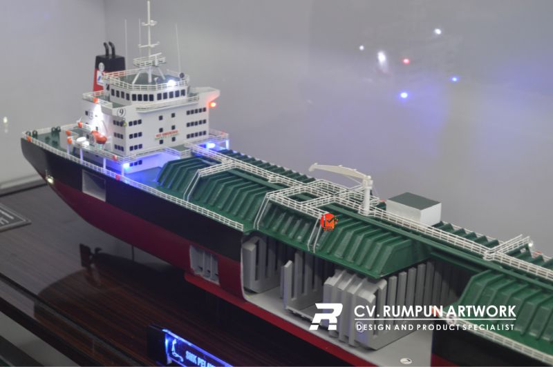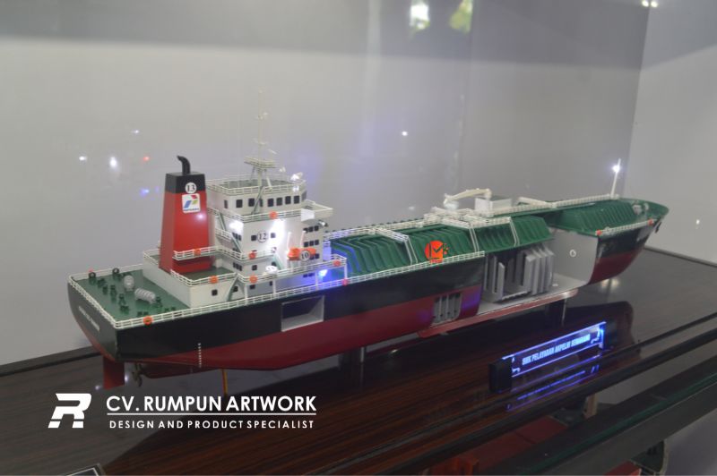 - Miniatur Kapal Cut Out Crude Oil Tanker ini berbahan dasar fiber, acrylic, resin, artificial part, kayu sebagai tatakan serta dilengkapi pencahayaan dengan lampu led ( optional ), kemudian kami bingkai dengan etalase kaca ( optional )