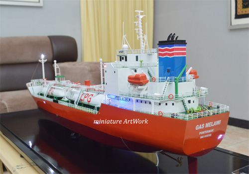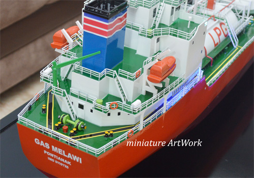 - Miniatur kapal LNG Gas Melawi ini berbahan dasar fiber, acrylic, resin, artificial part, kayu sebagai tatakan serta dilengkapi pencahayaan dengan lampu led ( optional ),
