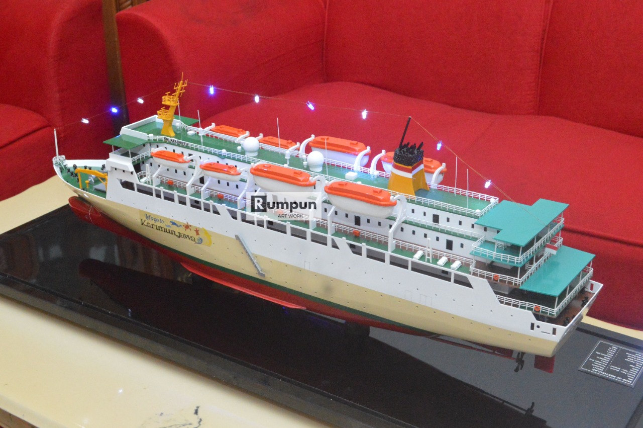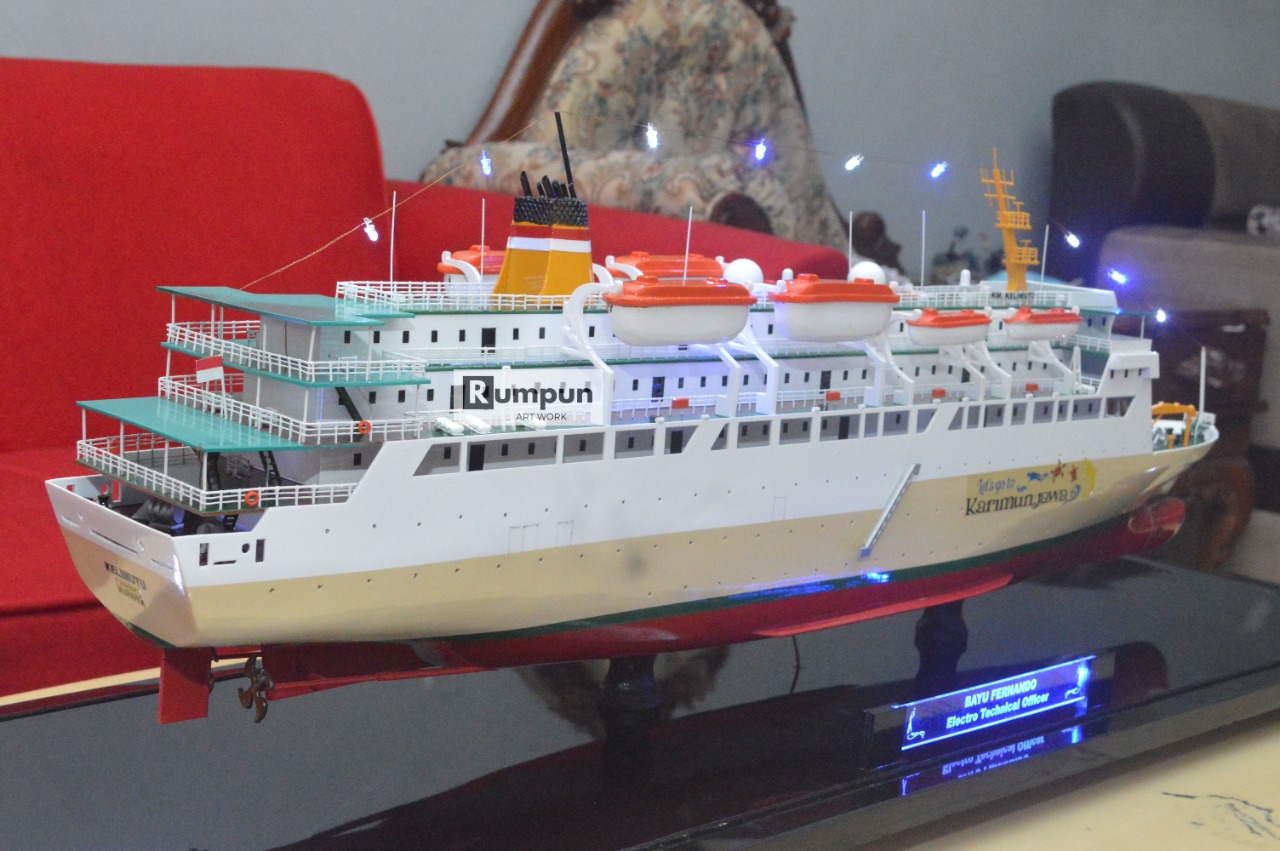 - Miniatur kapal Pelni Perintis ini berbahan dasar fiber, acrylic, resin, artificial part, kayu sebagai tatakan serta dilengkapi pencahayaan dengan lampu led ( optional ),