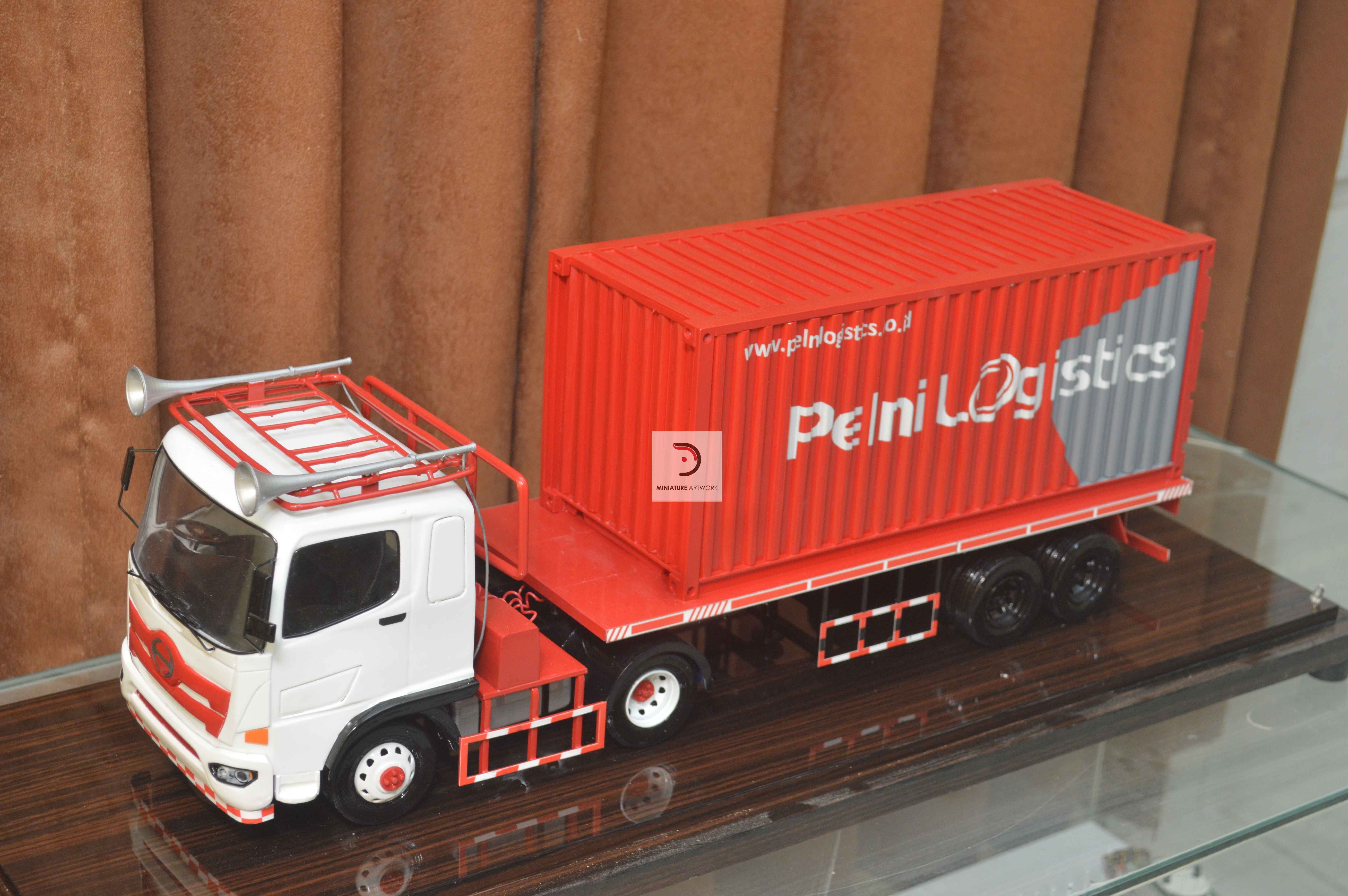 - Miniatur Mobil Pelni Logistics ini berbahan dasar fiber, acrylic, resin, artificial part, kayu sebagai tatakan serta dilengkapi pencahayaan dengan lampu led ( optional ),