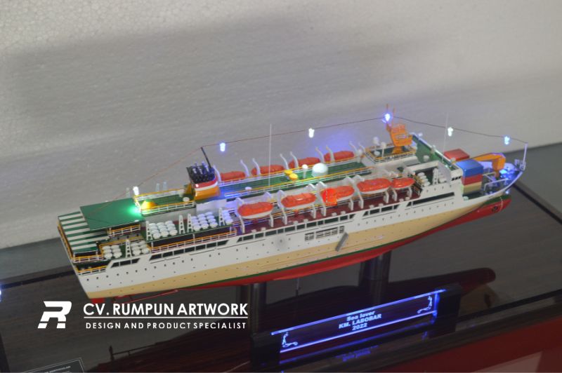- Miniatur Kapal Pelni KM Labobar ini berbahan dasar fiber, acrylic, resin, artificial part, kayu sebagai tatakan serta dilengkapi pencahayaan dengan lampu led ( optional ), kemudian kami bingkai dengan etalase kaca ( optional )
