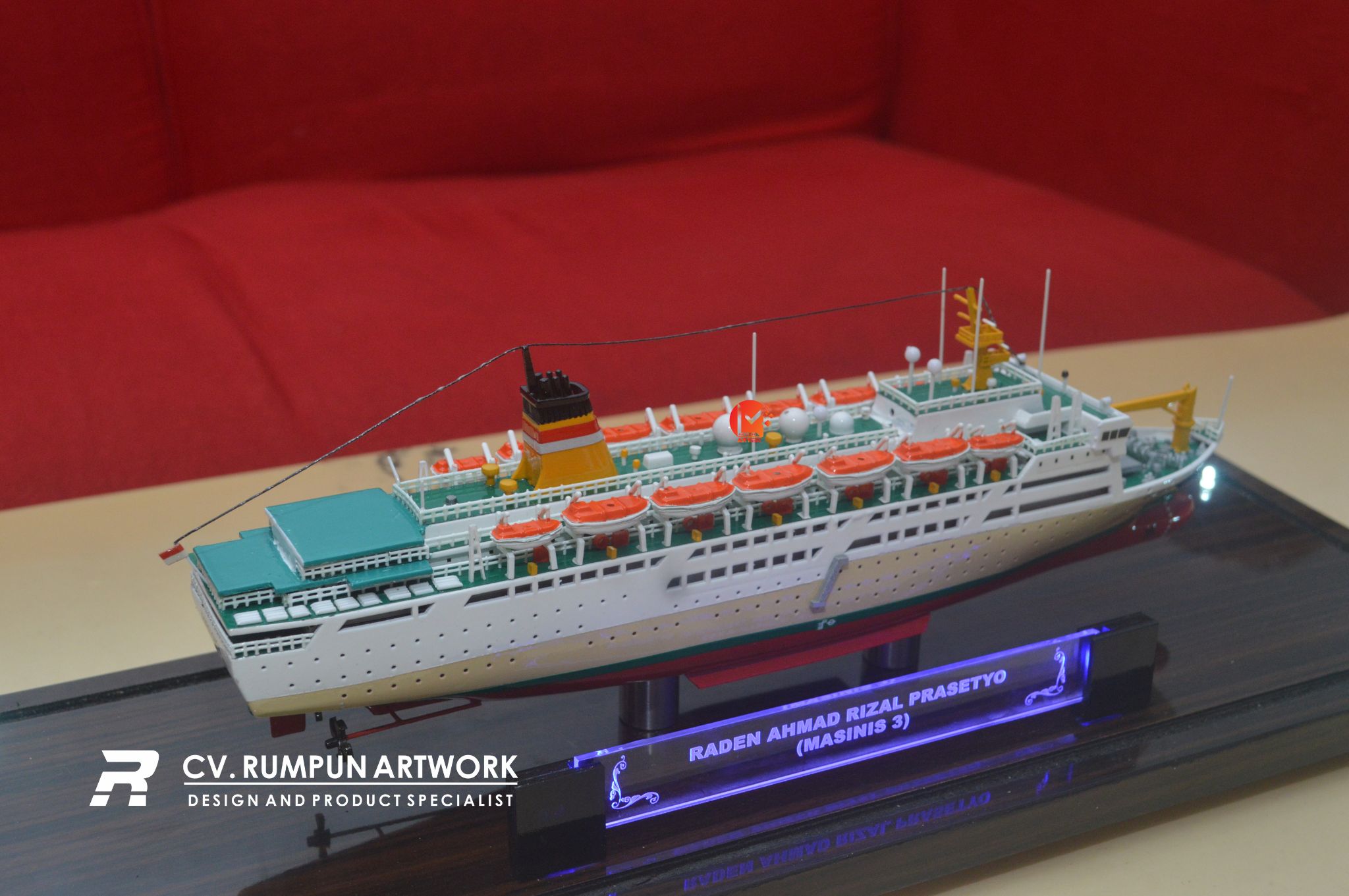 - Miniatur Kapal Pelni KM Dorolonda ini berbahan dasar fiber, acrylic, resin, artificial part, kayu sebagai tatakan serta dilengkapi pencahayaan dengan lampu led ( optional ), kemudian kami bingkai dengan etalase kaca ( optional )