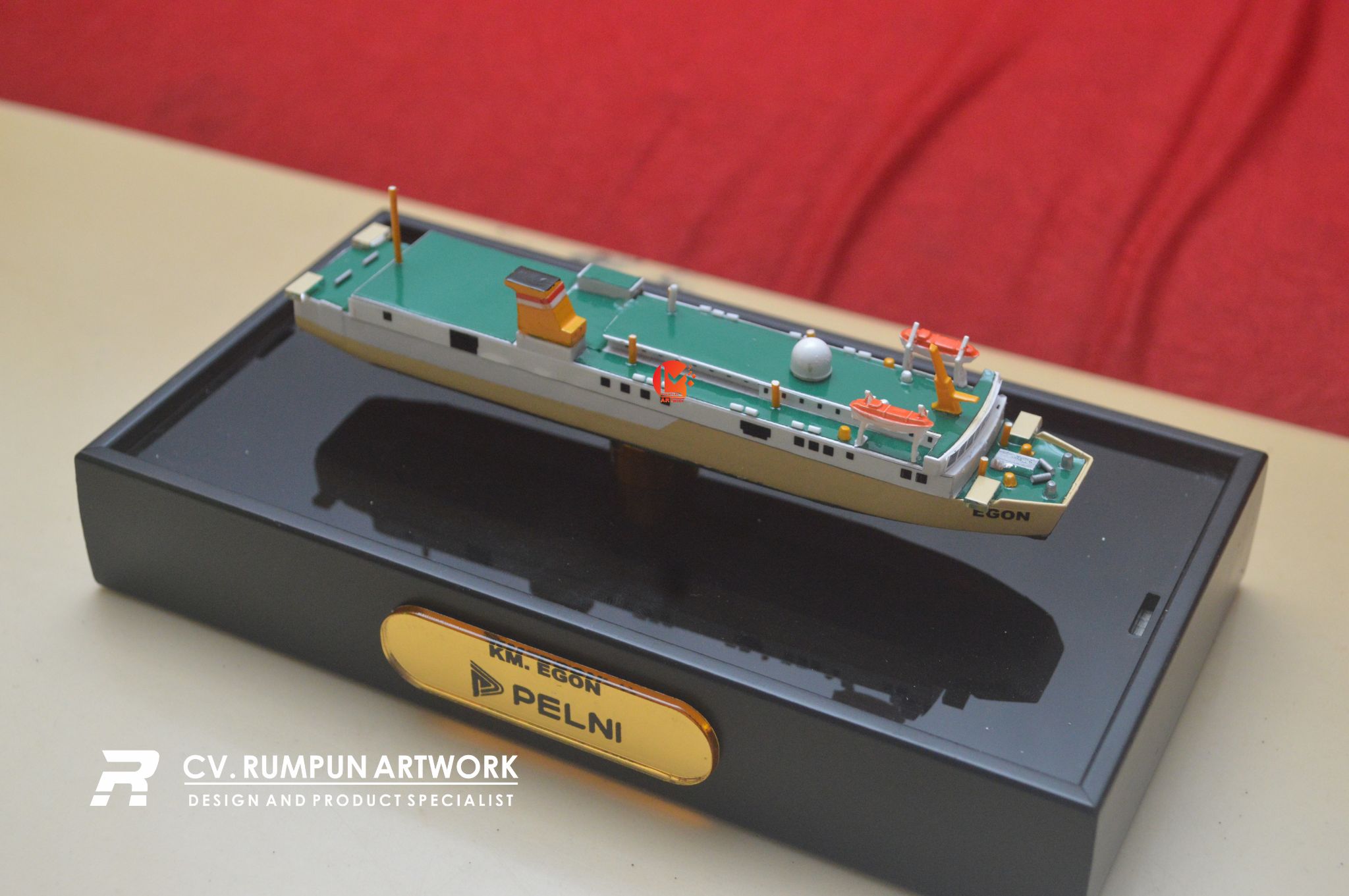 - Miniatur Kapal Pelni Egon ini berbahan dasar fiber, acrylic, resin, artificial part, kayu sebagai tatakan serta dilengkapi pencahayaan dengan lampu led ( optional ), kemudian kami bingkai dengan etalase kaca ( optional ) dibuat dengan berbagai macam ukuran (30 cm, 40 cm, 70 cm, dan 100 cm)