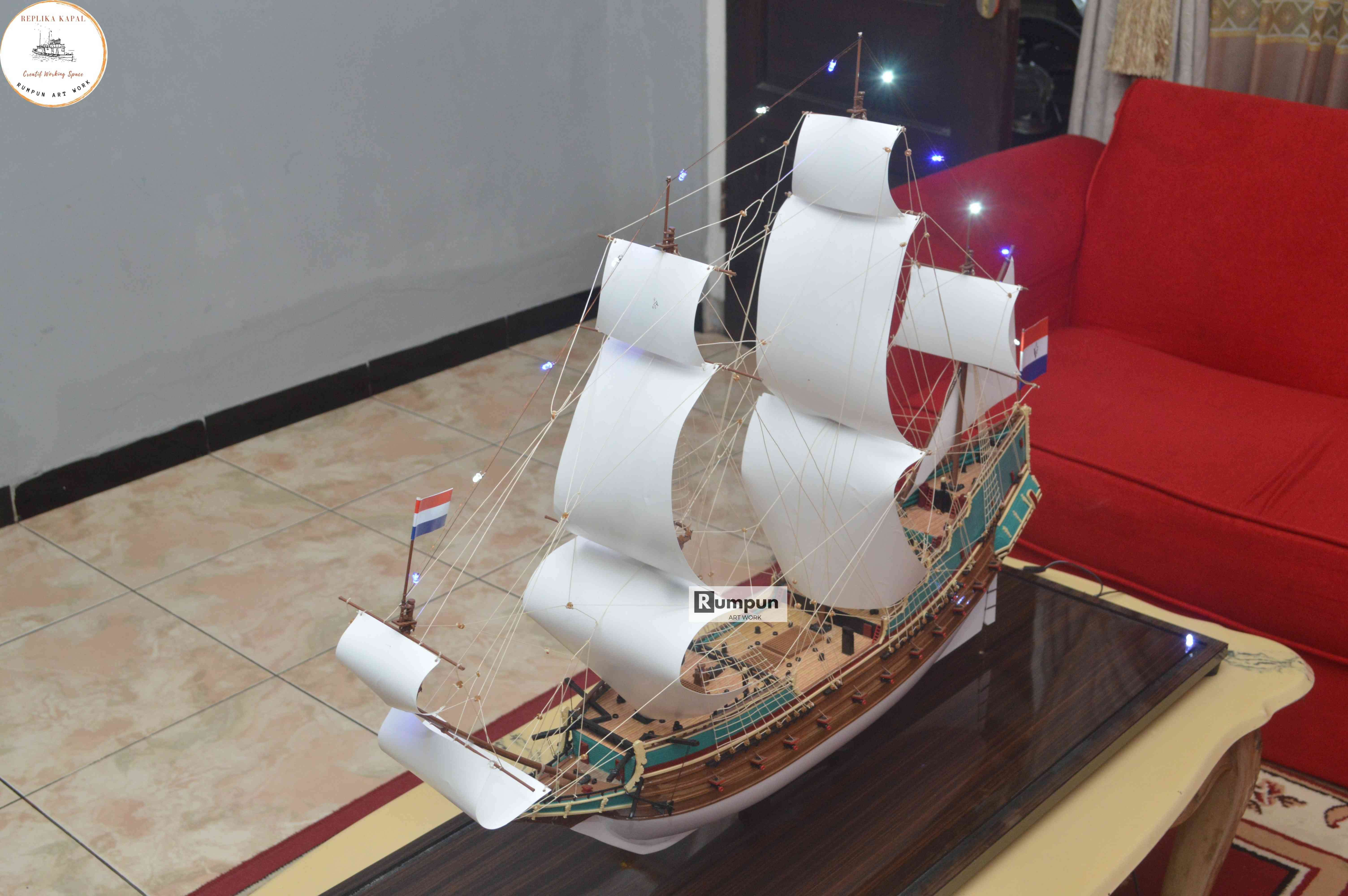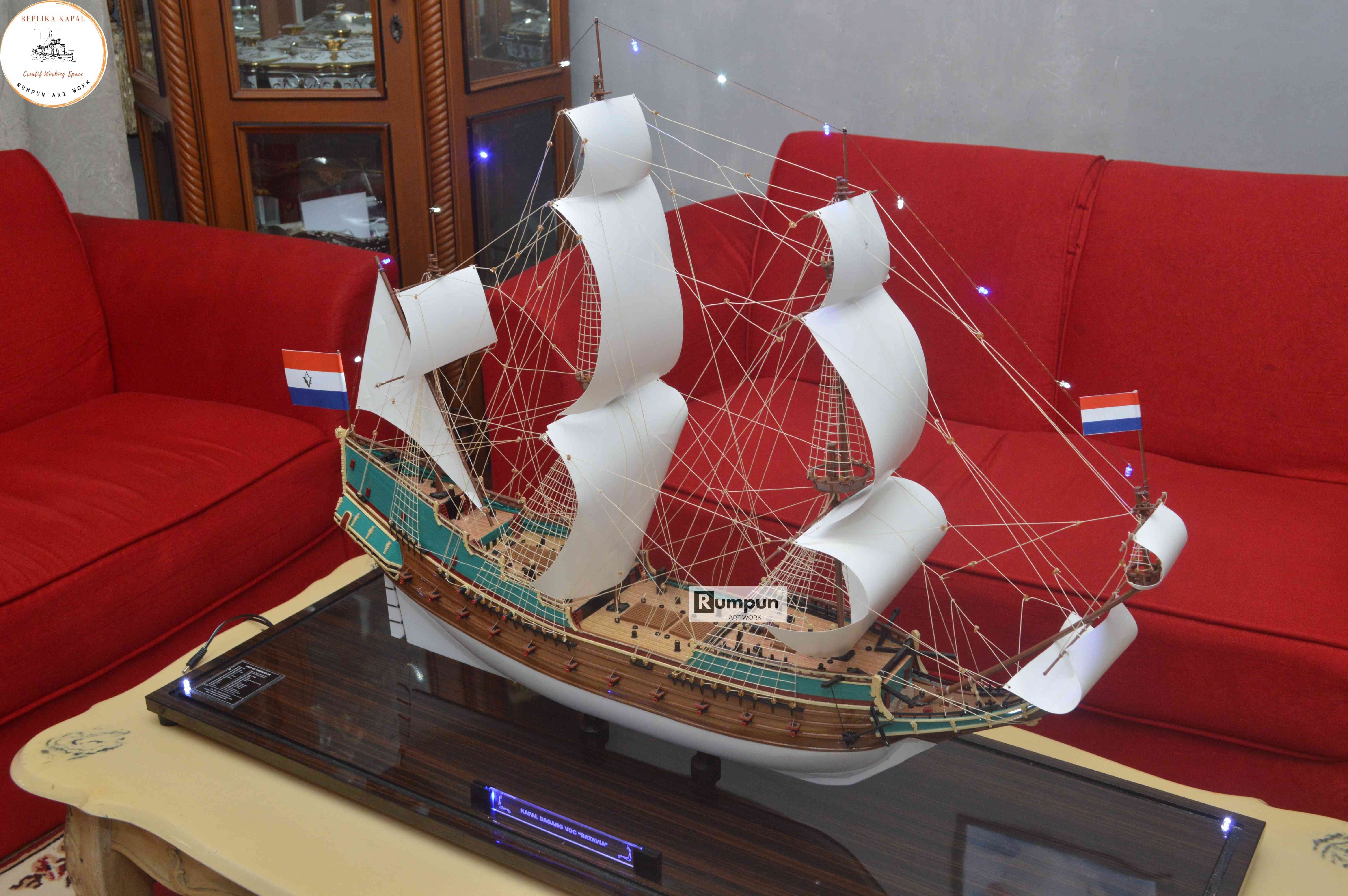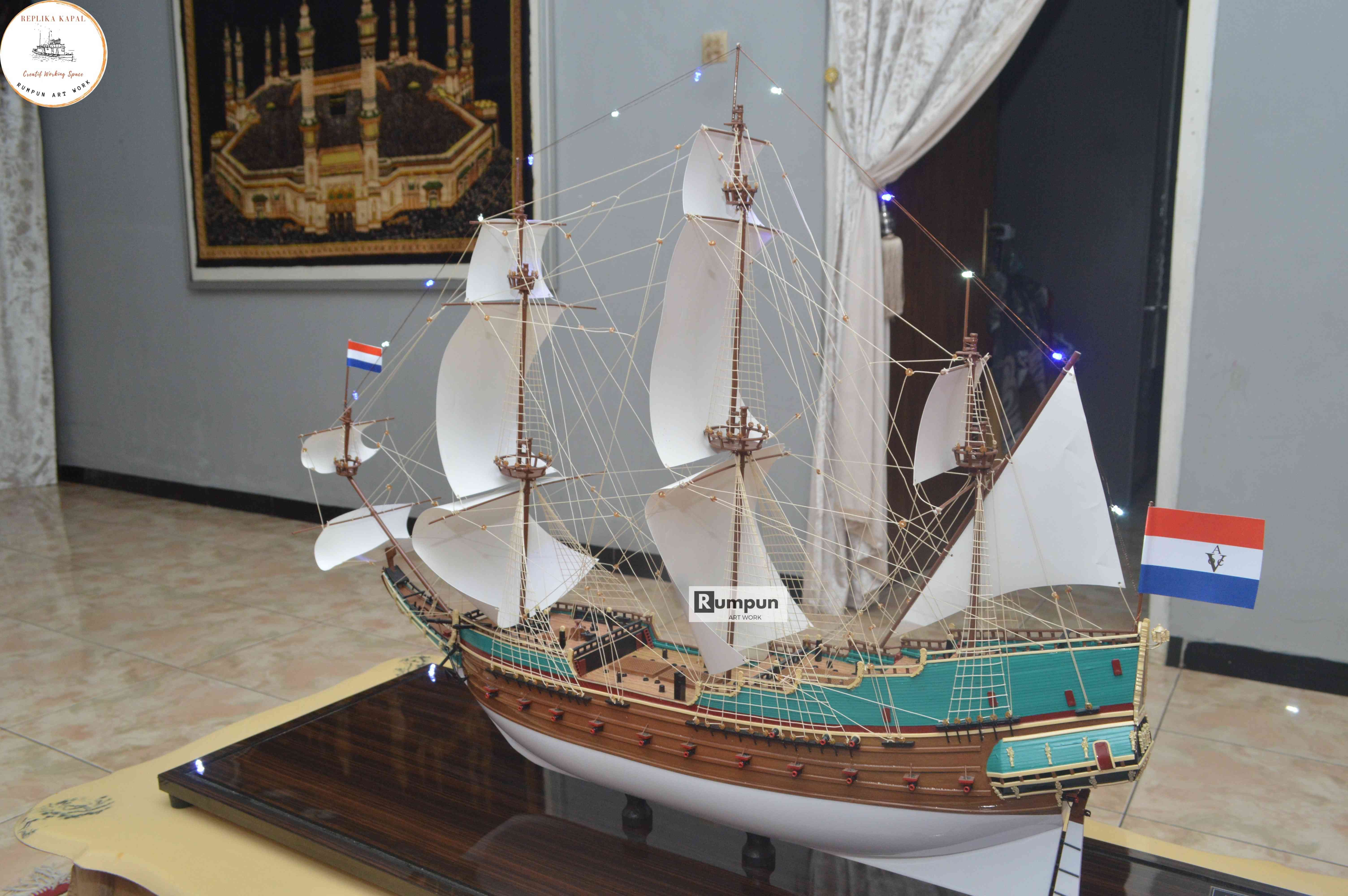 • Miniatur Kapal Layar Dagang VOC Batavia ini berbahan dasar fiber, acrylic,kain ,tali, resin, artificial part, kayu sebagai tatakan serta dilengkapi pencahayaan dengan lampu led ( optional ), kemudian kami bingkai dengan etalase kaca ( optional )