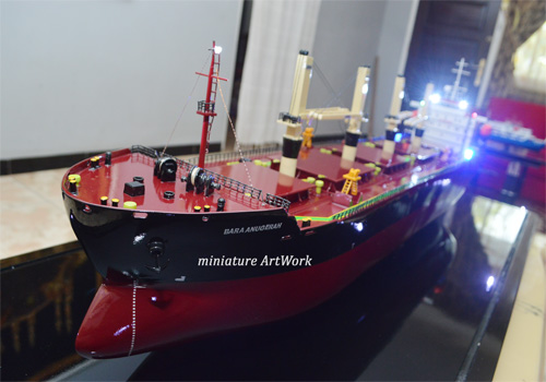 - Miniatur kapal Super Tanker Bara Anugerah ini berbahan dasar fiber, acrylic, resin, artificial part, kayu sebagai tatakan serta dilengkapi pencahayaan dengan lampu led ( optional ),