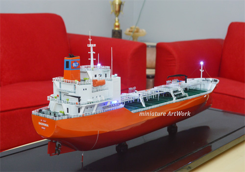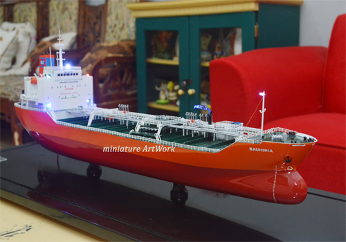 - Miniatur kapal Tanker Bauhinia ini berbahan dasar fiber, acrylic, resin, artificial part, kayu sebagai tatakan serta dilengkapi pencahayaan dengan lampu led ( optional ),