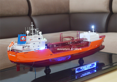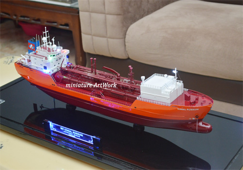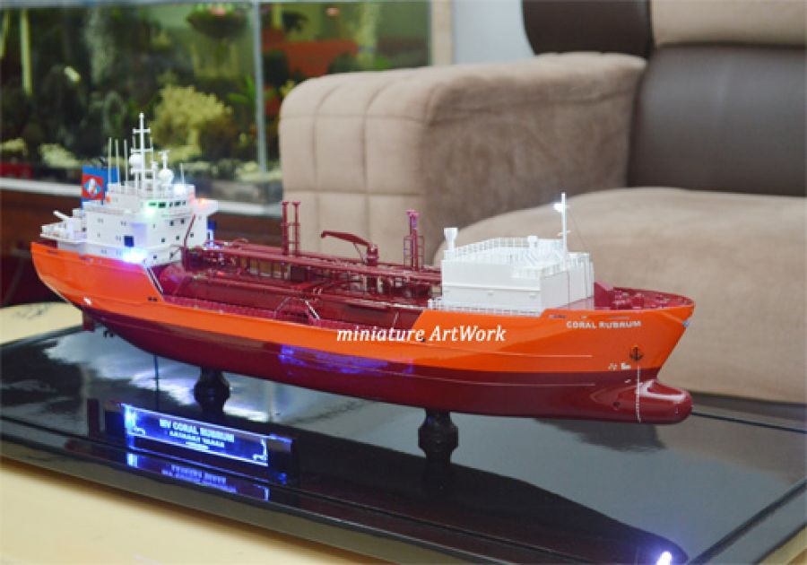 - Miniatur kapal Tanker Coral Rubrum ini berbahan dasar fiber, acrylic, resin, artificial part, kayu sebagai tatakan serta dilengkapi pencahayaan dengan lampu led ( optional ),