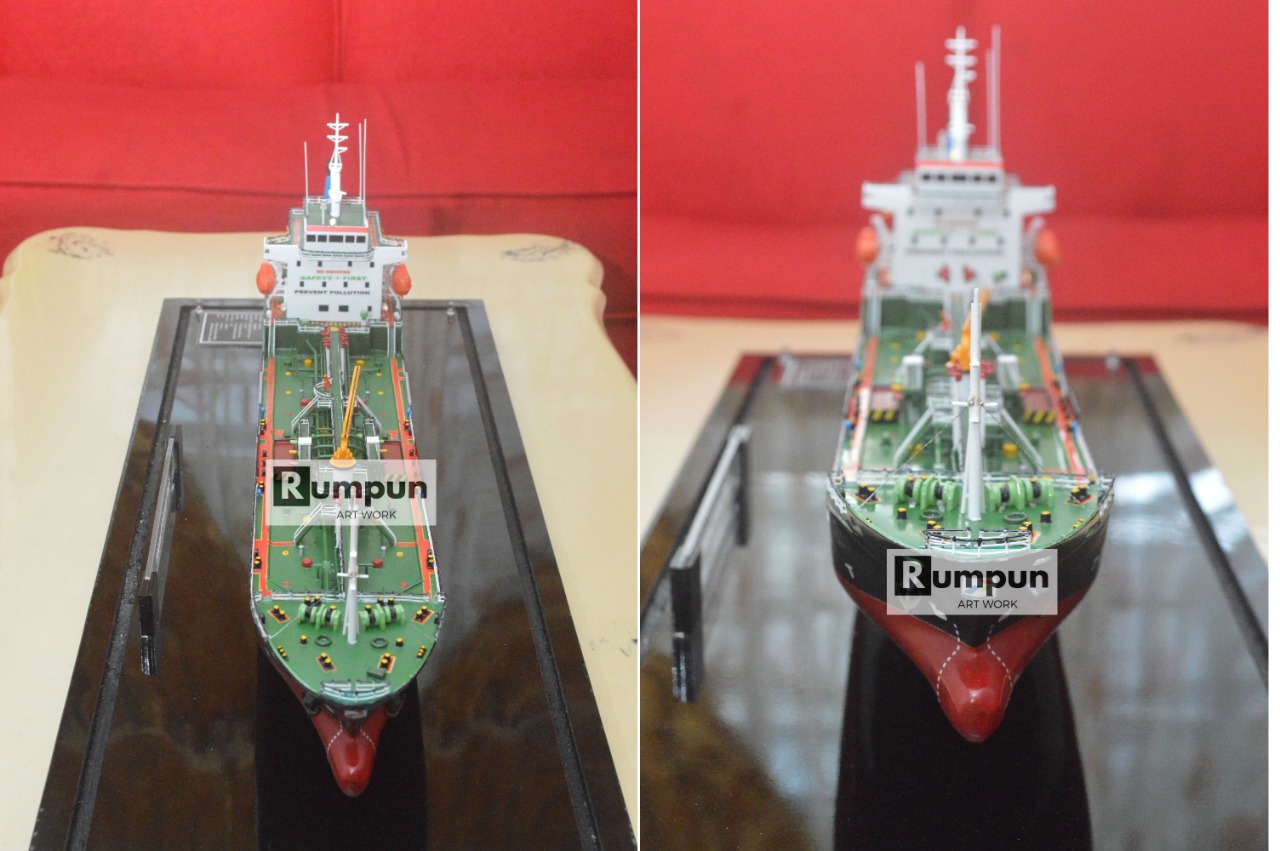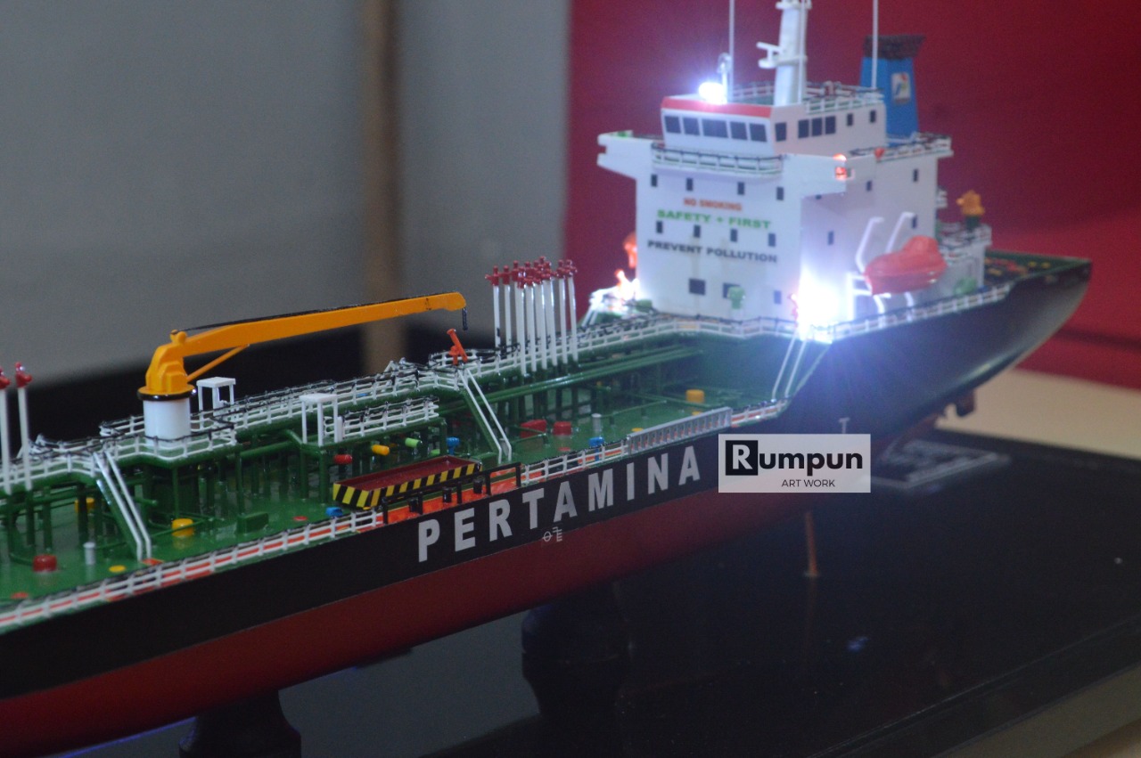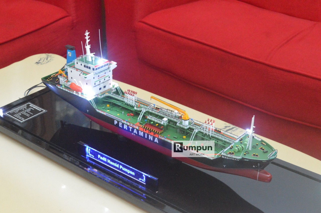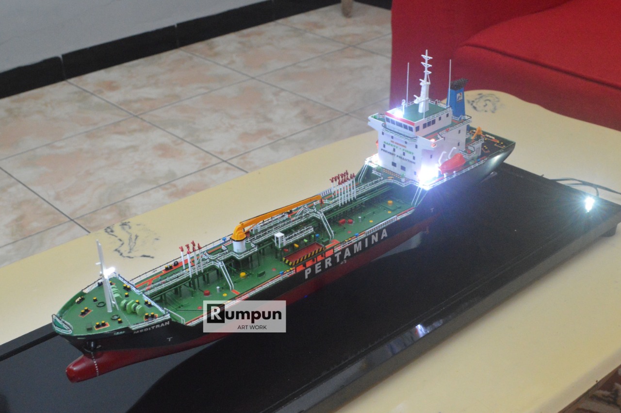 - Miniatur kapal Tanker Meditran ini berbahan dasar fiber, acrylic, resin, artificial part, kayu sebagai tatakan serta dilengkapi pencahayaan dengan lampu led ( optional ),