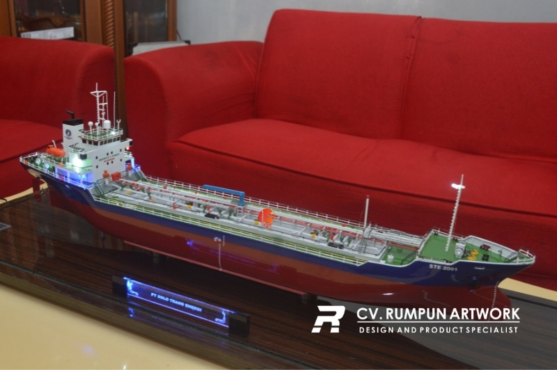 - Miniatur Kapal Tanker STE 2001 ini berbahan dasar fiber, acrylic, resin, artificial part, kayu sebagai tatakan serta dilengkapi pencahayaan dengan lampu led ( optional ), kemudian kami bingkai dengan etalase kaca ( optional )