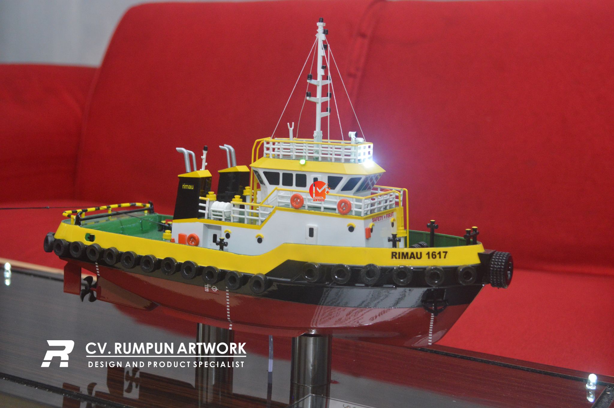 - Miniatur Kapal TB Rimau 1617 dan BG Rimau 3017 ini berbahan dasar fiber, acrylic, resin, artificial part, kayu sebagai tatakan serta dilengkapi pencahayaan dengan lampu led ( optional ), kemudian kami bingkai dengan etalase kaca ( optional ) dibuat dengan berbagai macam ukuran (30 cm, 40 cm, 70 cm, dan 100 cm)