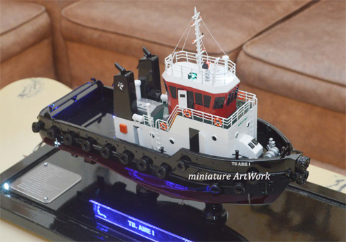 Miniatur kapal Tug Boat TB Ame; kapal tug boat adalah Kapal tunda (bahasa Inggris: tugboat) adalah kapal yang dapat digunakan untuk melakukan manuver / pergerakan, utamanya menarik atau mendorong kapal lainnya di pelabuhan, laut lepas atau melalui sungai atau terusan. Kapal tunda digunakan pula untuk menarik tongkang,kapal rusak, dan peralatan lainnya.