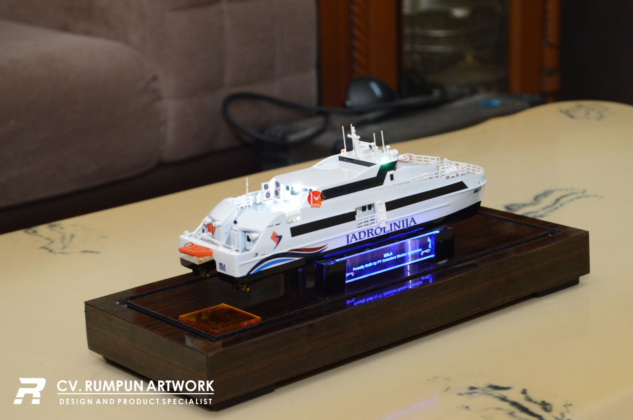 - Miniatur Kapal Yacht Mila ini berbahan dasar fiber, akrilik, resin, bagian buatan, kayu sebagai tatakan serta dilengkapi pencahayaan dengan lampu led (opsional), kemudian kami bingkai dengan etalase kaca (opsional) dibuat dengan berbagai macam ukuran (30 cm, 40 cm, 70 cm, dan 100 cm)