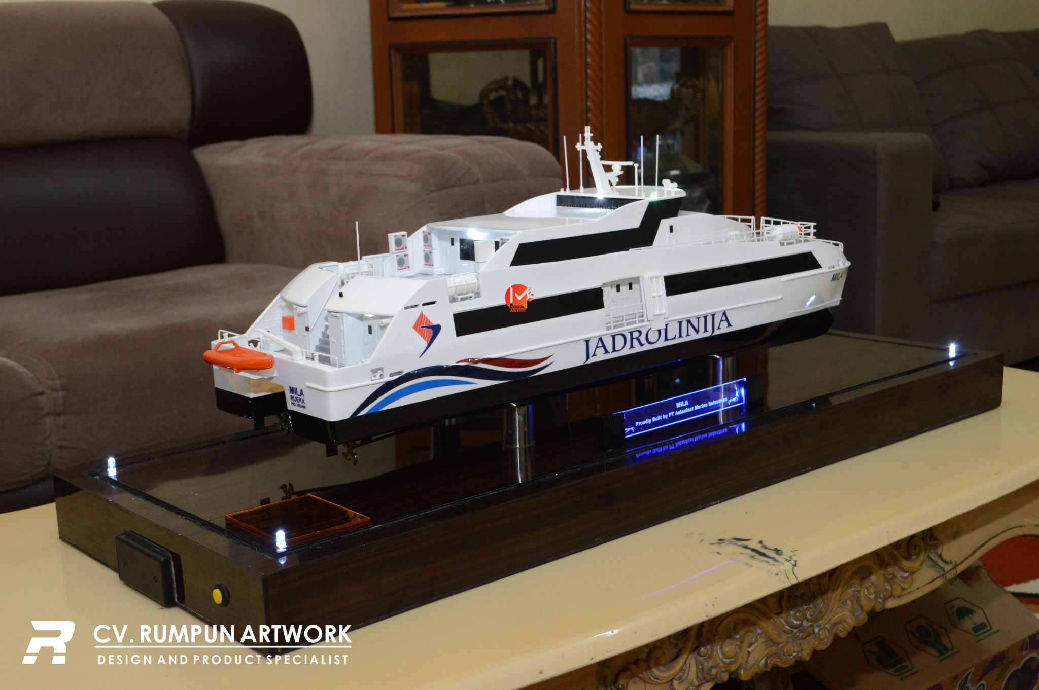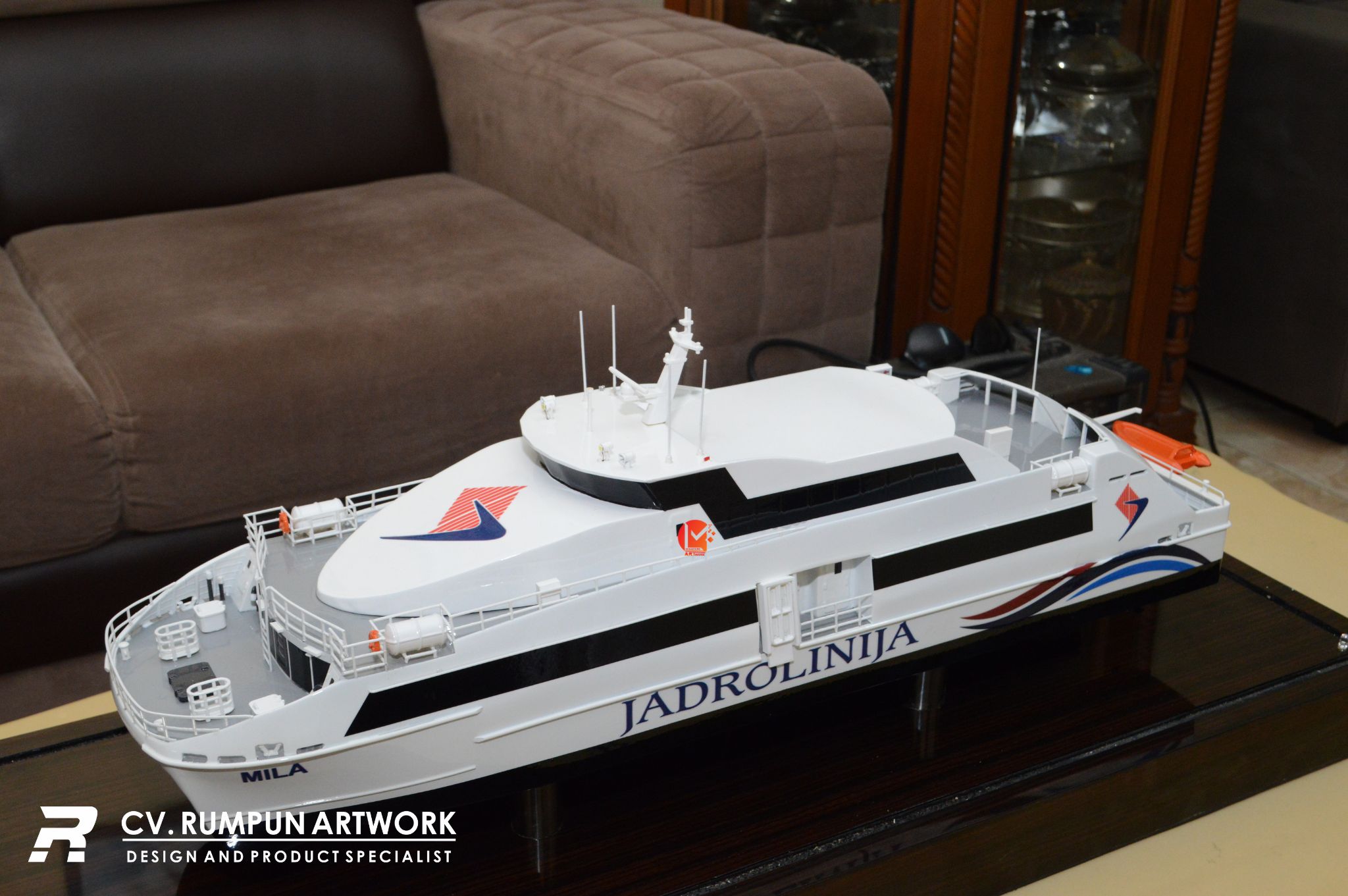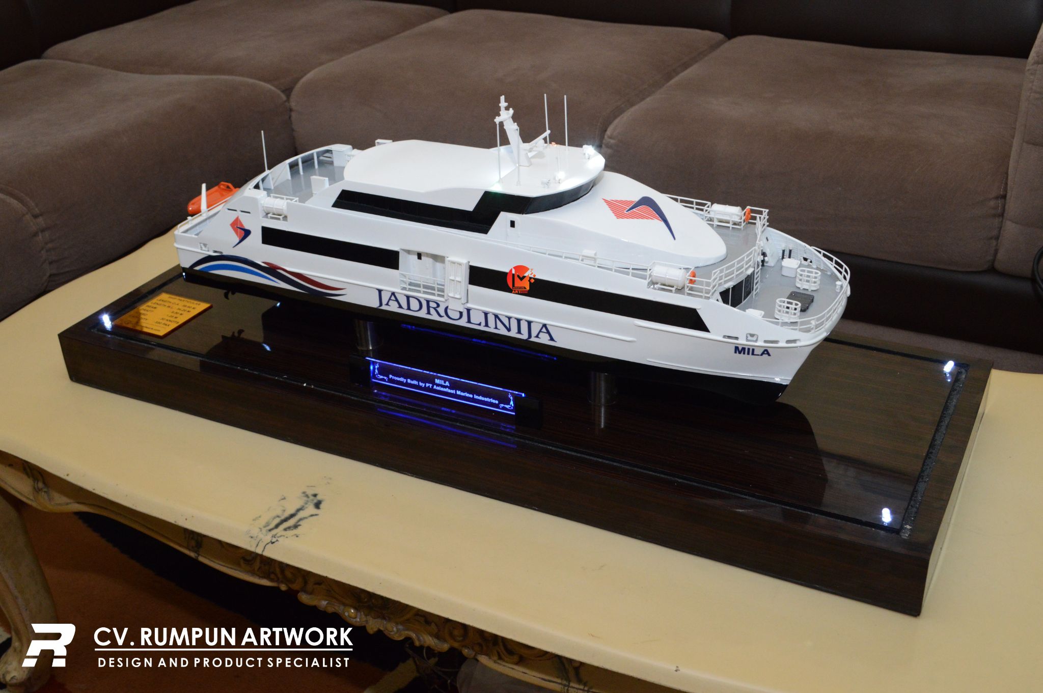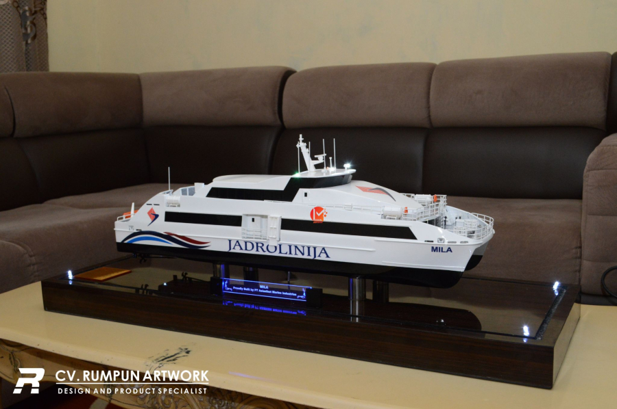 - Miniatur Kapal Yacht Mila ini berbahan dasar fiber, akrilik, resin, bagian buatan, kayu sebagai tatakan serta dilengkapi pencahayaan dengan lampu led (opsional), kemudian kami bingkai dengan etalase kaca (opsional) dibuat dengan berbagai macam ukuran (30 cm, 40 cm, 70 cm, dan 100 cm)