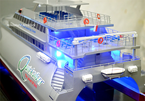 - Miniatur kapal Yacht Quicksilver ini berbahan dasar fiber, acrylic, resin, artificial part, kayu sebagai tatakan serta dilengkapi pencahayaan