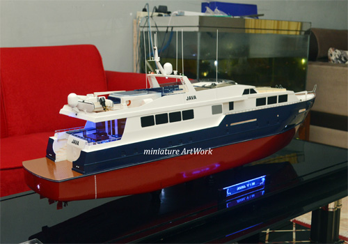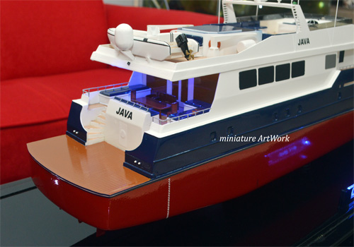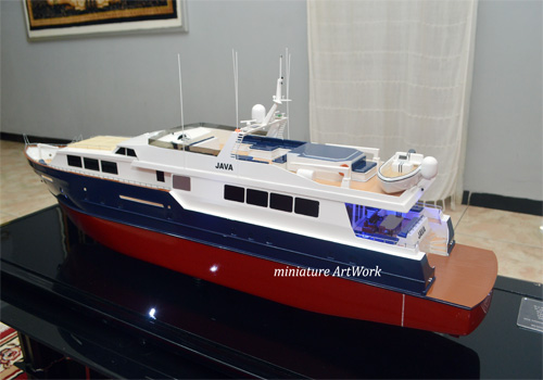 - Miniatur kapal Yacht Java ini berbahan dasar fiber, acrylic, resin, artificial part, kayu sebagai tatakan serta dilengkapi pencahayaan