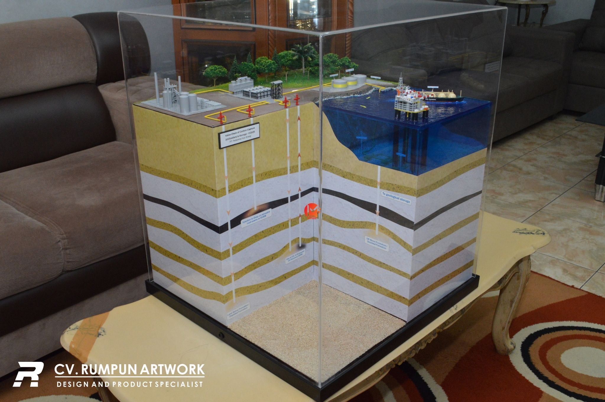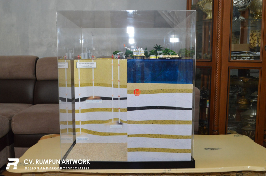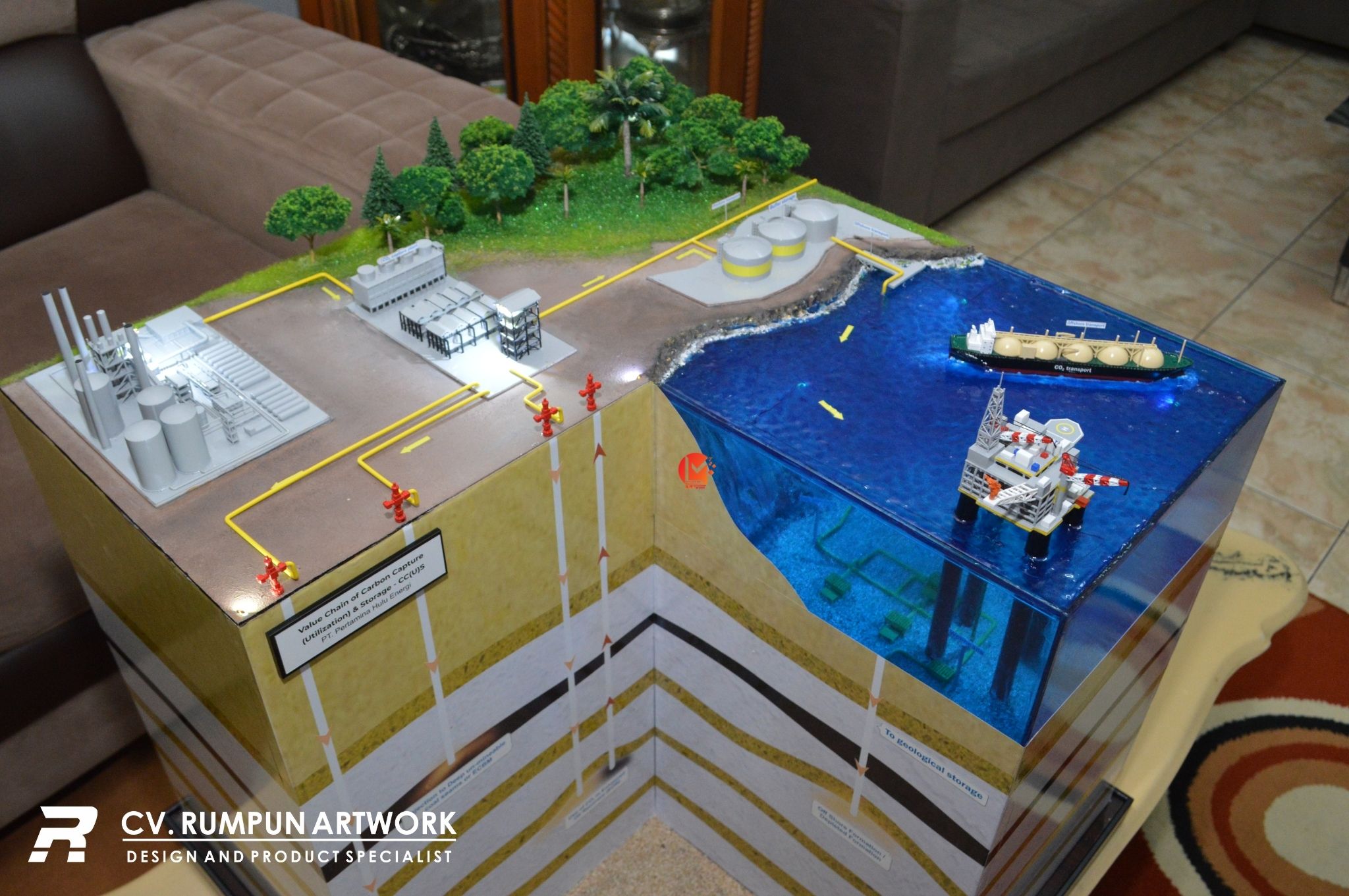 - Maket Value Chain of Carbon Capture (Utilization) & Storage - CC(U)S ini berbahan dasar fiber, akrilik, resin, bagian buatan, kayu sebagai tatakan serta dilengkapi pencahayaan dengan lampu led (opsional), kemudian kami bingkai dengan etalase kaca (opsional) dibuat dengan berbagai macam ukuran (30 cm, 40 cm, 70 cm, dan 100 cm)