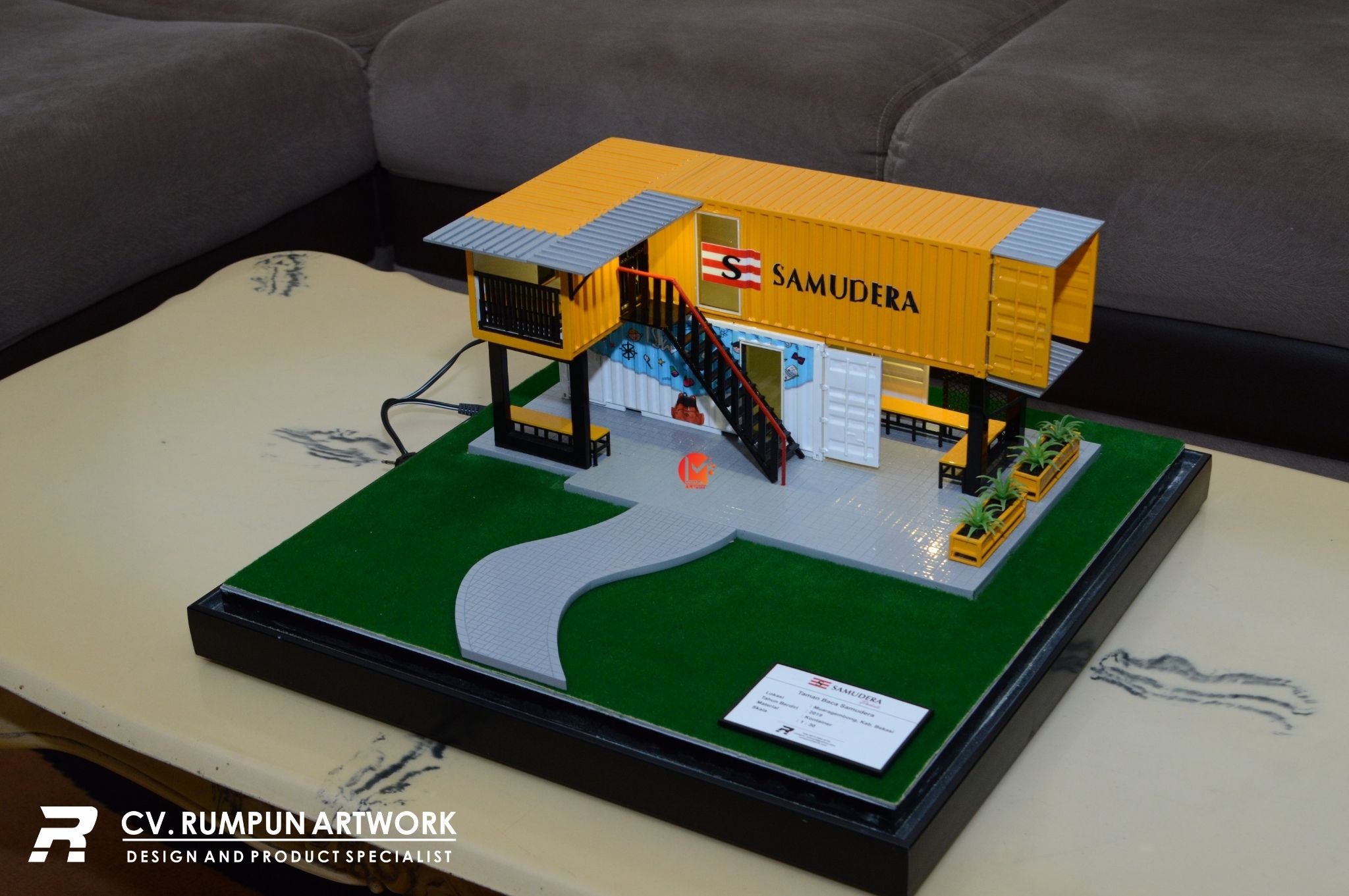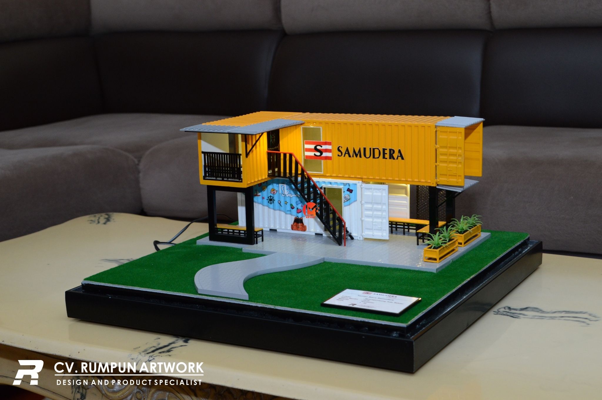 - Maket Taman Baca Muara Gembong (Samudera) ini berbahan dasar fiber, akrilik, resin, bagian buatan, kayu sebagai tatakan serta dilengkapi pencahayaan dengan lampu led (opsional), kemudian kami bingkai dengan etalase kaca (opsional) dibuat dengan berbagai macam ukuran (30 cm, 40 cm, 70 cm, dan 100 cm)