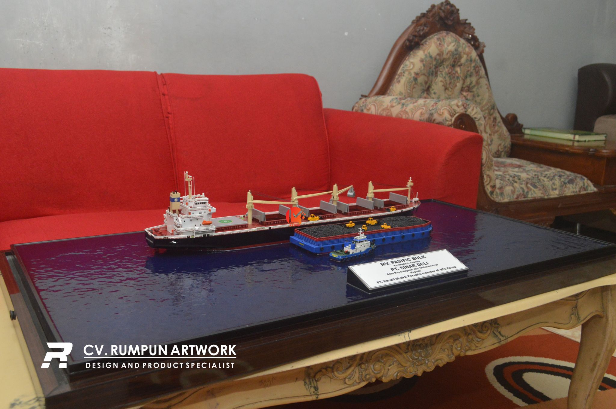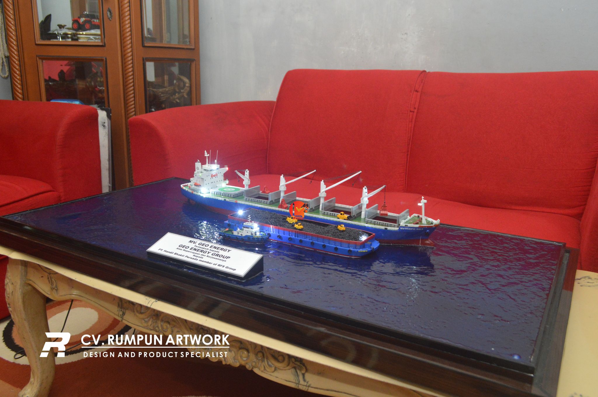 - Maket Bongkar-Muat Batubara MV Geo Energy ini berbahan dasar fiber, acrylic, resin, artificial part, kayu sebagai tatakan serta dilengkapi pencahayaan dengan lampu led ( optional ), kemudian kami bingkai dengan etalase kaca ( optional )